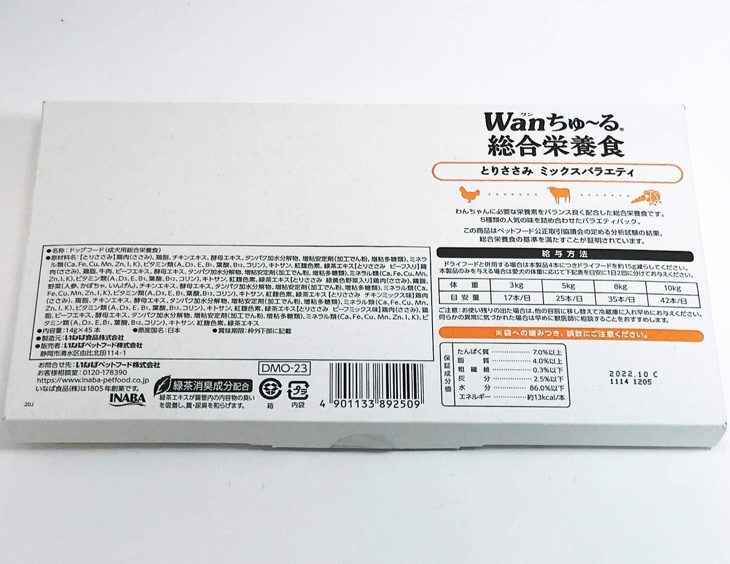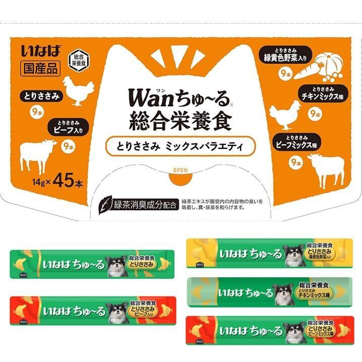 Figaro(フィガロ) Wanちゅ~る 総合栄養食 とりささみ ミックスバラエティ 14g×45本 犬用おやつ