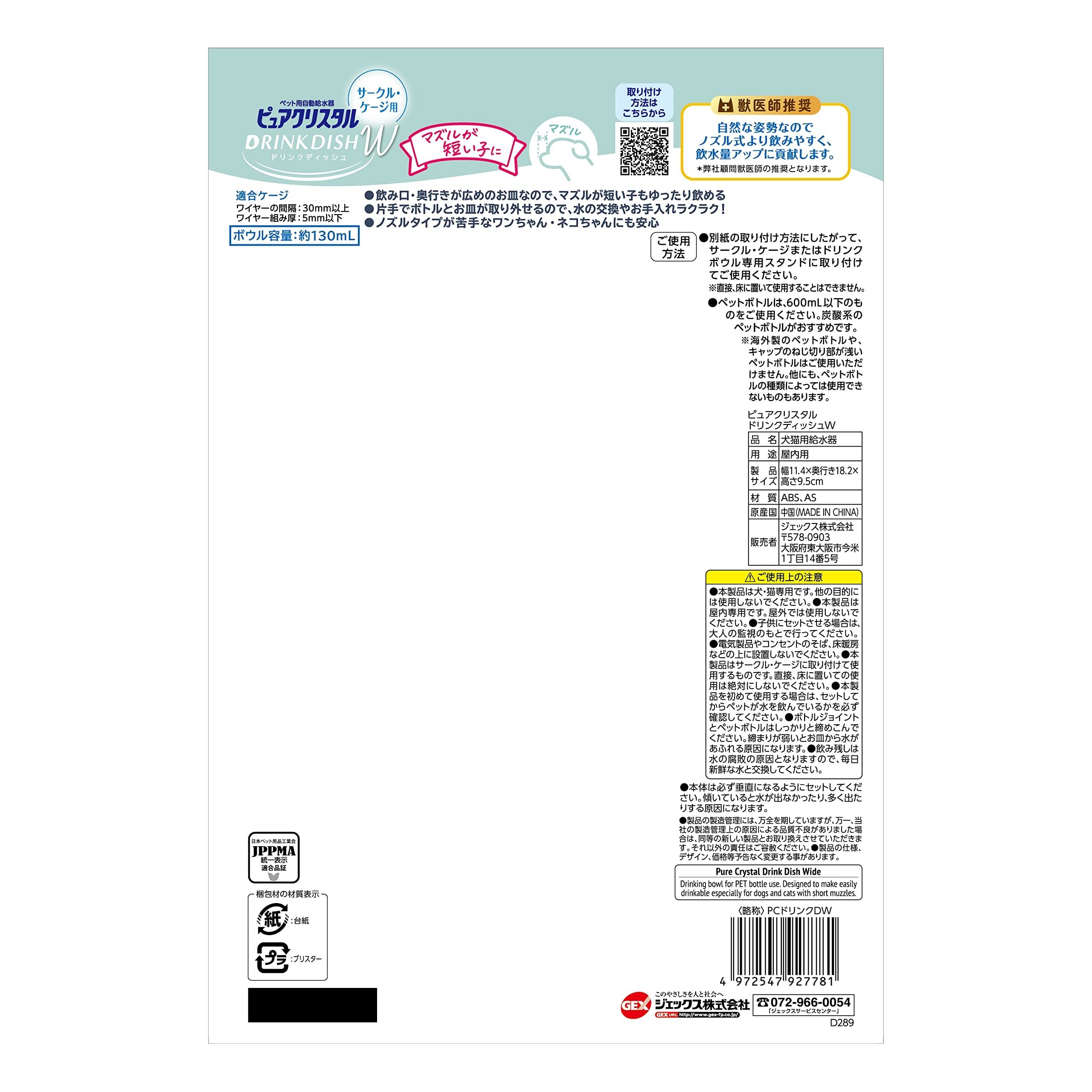 GEX ピュアクリスタル ピュアクリスタル ドリンクディッシュ W サークル・ケージに取り付け 飲みやすい浅皿形状 お手入れ簡単 たれ耳 鼻ぺちゃ マズル 鼻短 短頭種 犬猫用