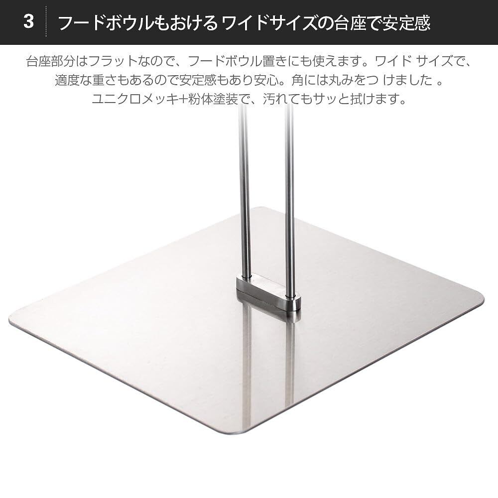 フードボウルも置ける、ワイドサイズの台座で安定感ある。