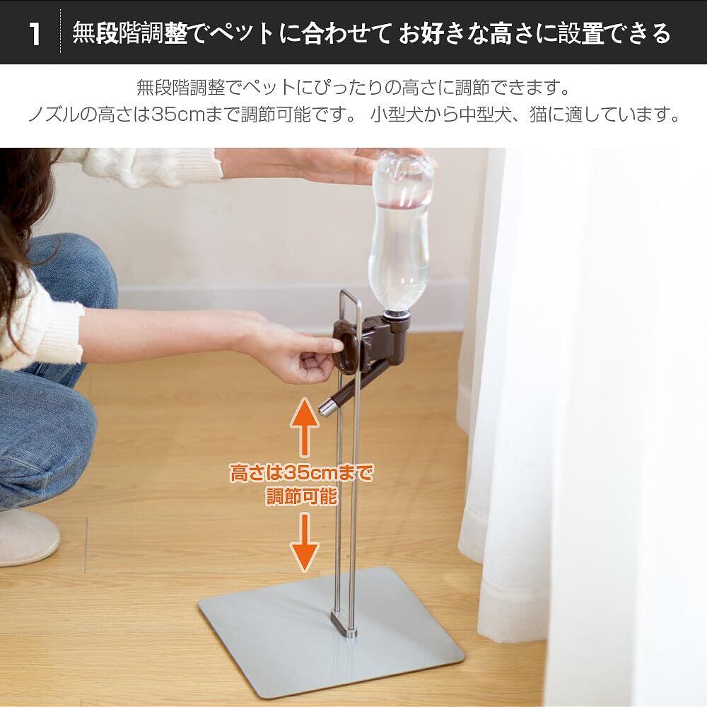 ノズルの高さ35cmまで調節可能です。小型犬から中型犬、猫に適しています。