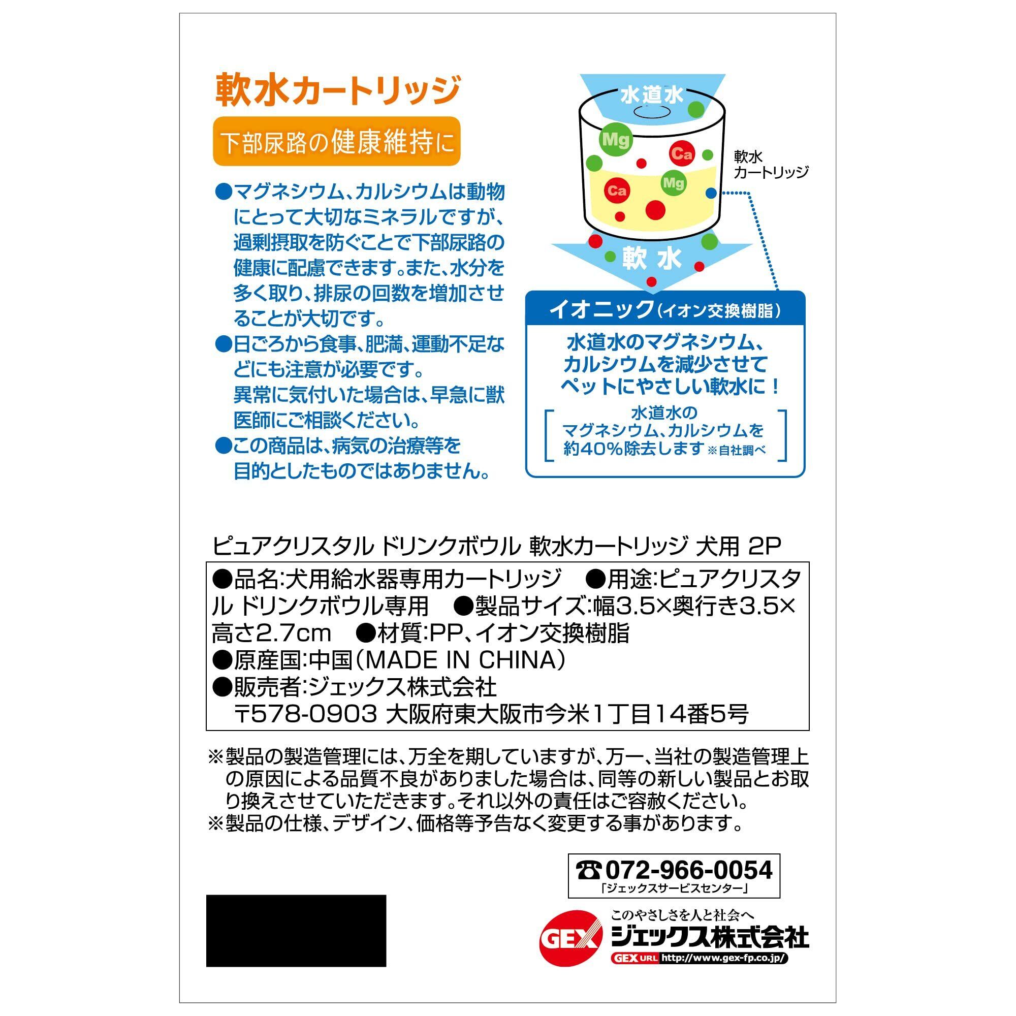 ジェックス GEX ピュアクリスタル ドリンクボウル 軟水カートリッジ 下部尿路の健康維持に 犬用 2個[約2ヵ月分]