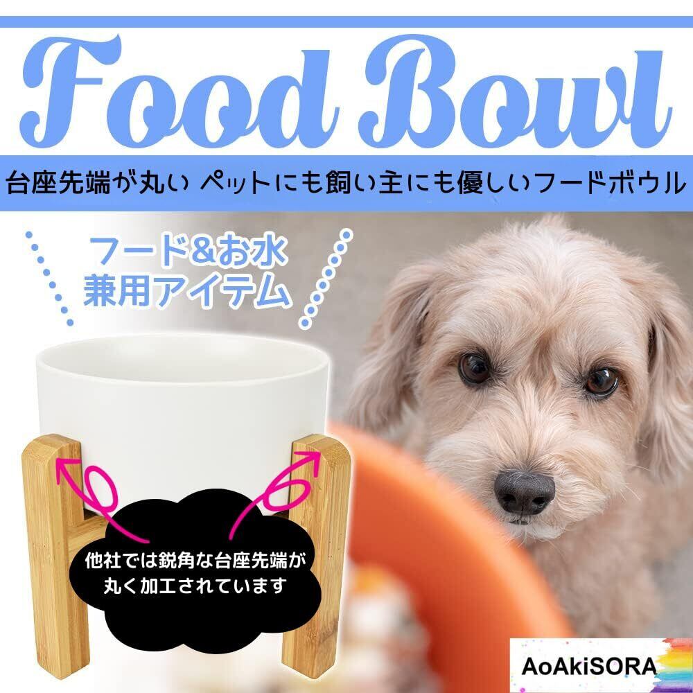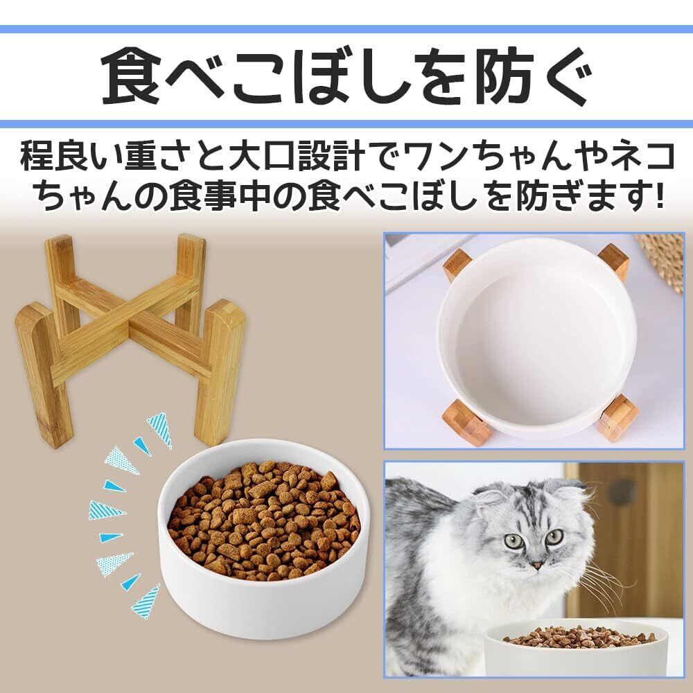 ペット用 竹製スタンド付き フードボウル 小型 400ml ウォーター ボウル 竹製台座 取り外し可能 犬 子犬 犬猫用 タイニー シンプル 餌・水入れ 吐き戻し防止 清潔感 無垢 純粋 白 (400ml ホワイト)