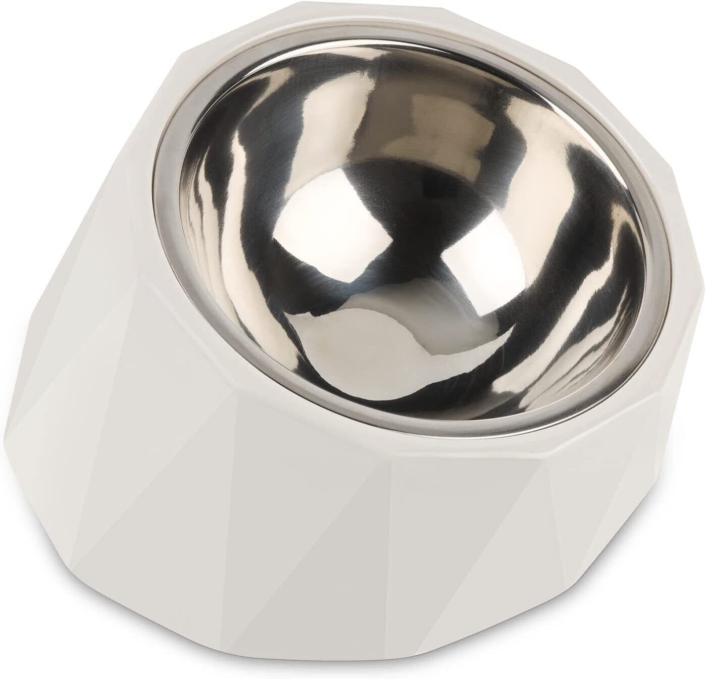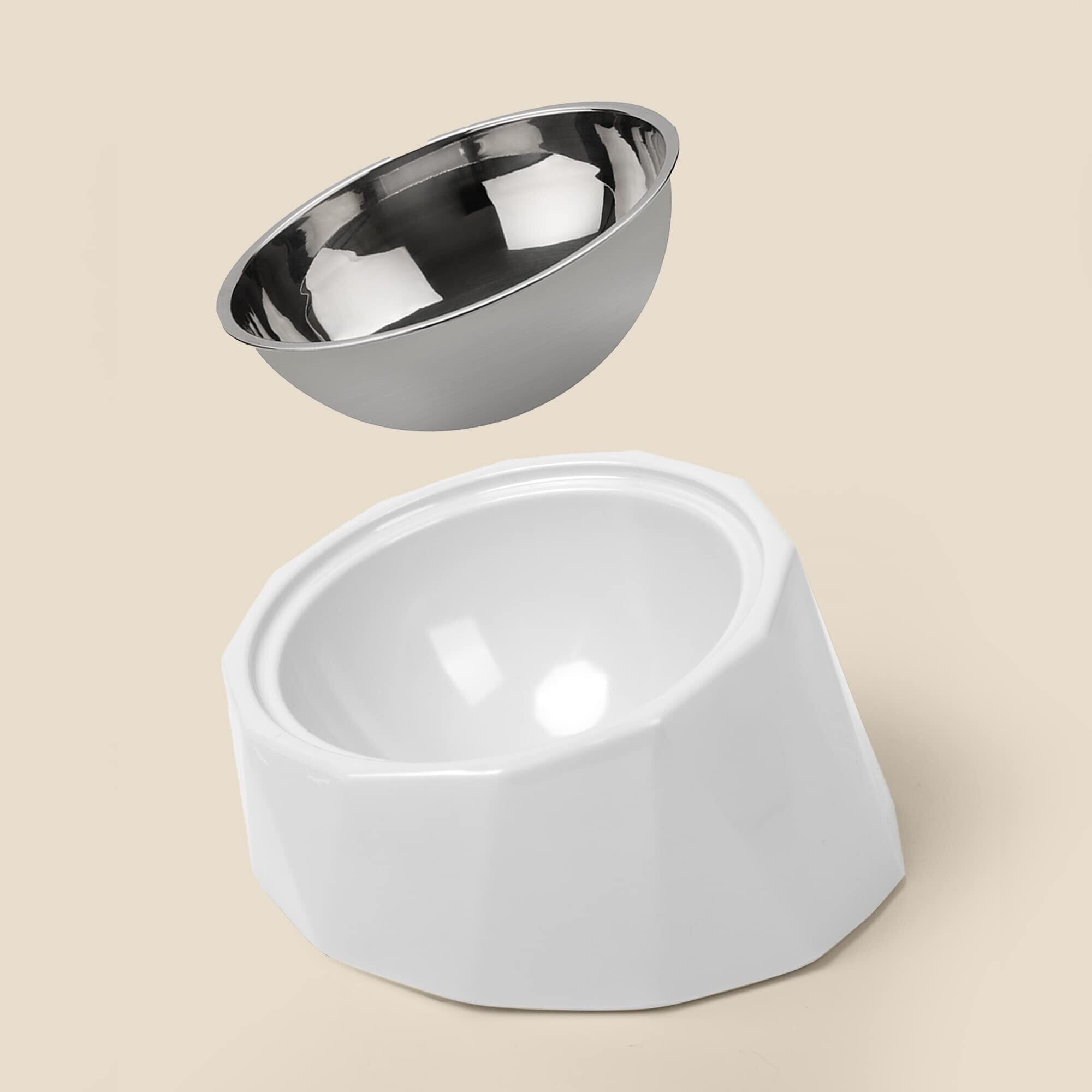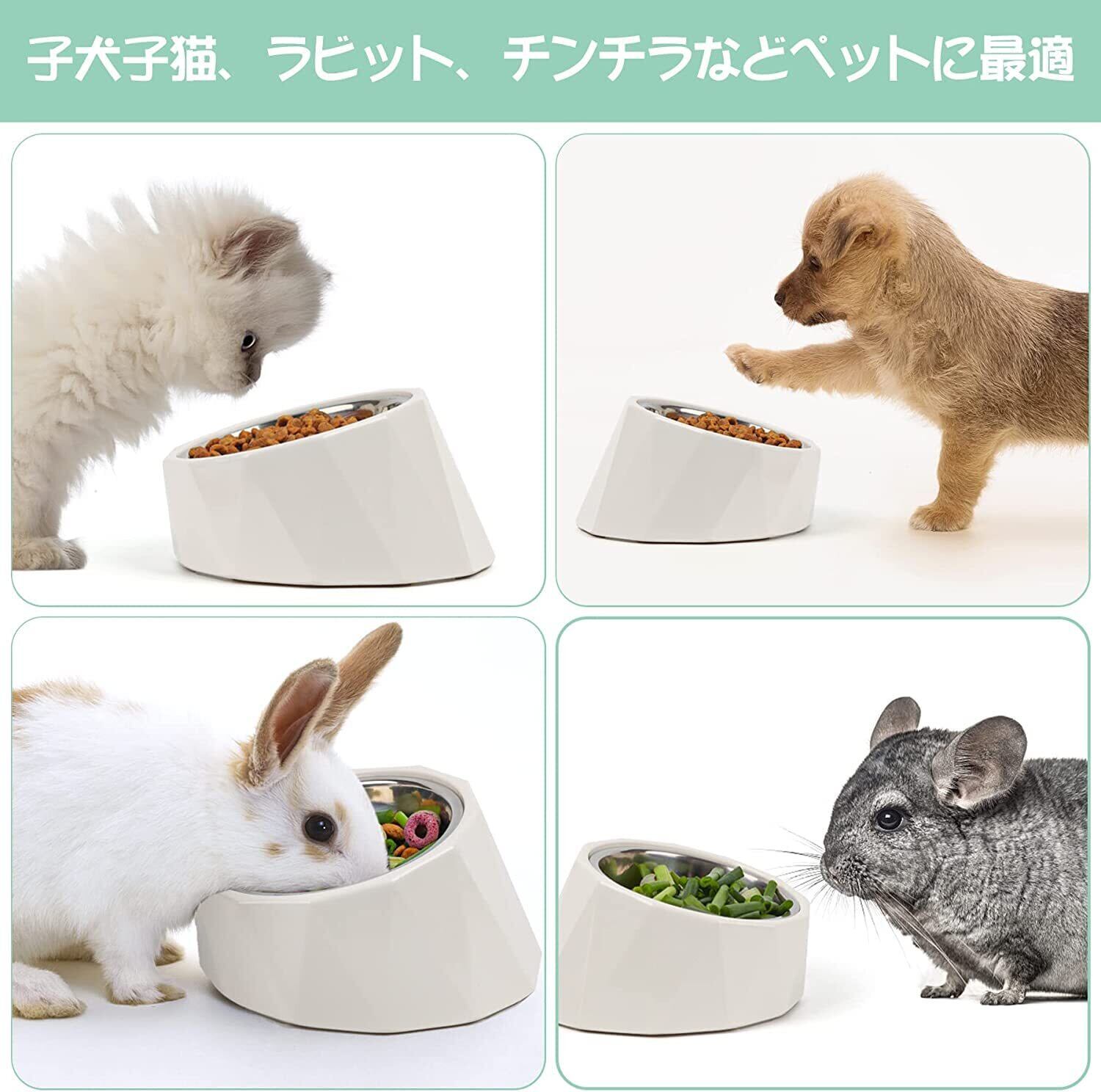 HAKOPE ペット食器 ペットボウル 15度傾斜 滑り止め付き ステンレス鋼 メラミン樹脂スタンド 分離式 犬猫用 餌皿 (ホワイト)