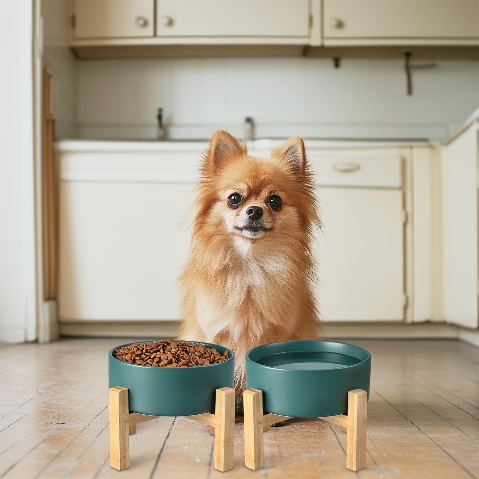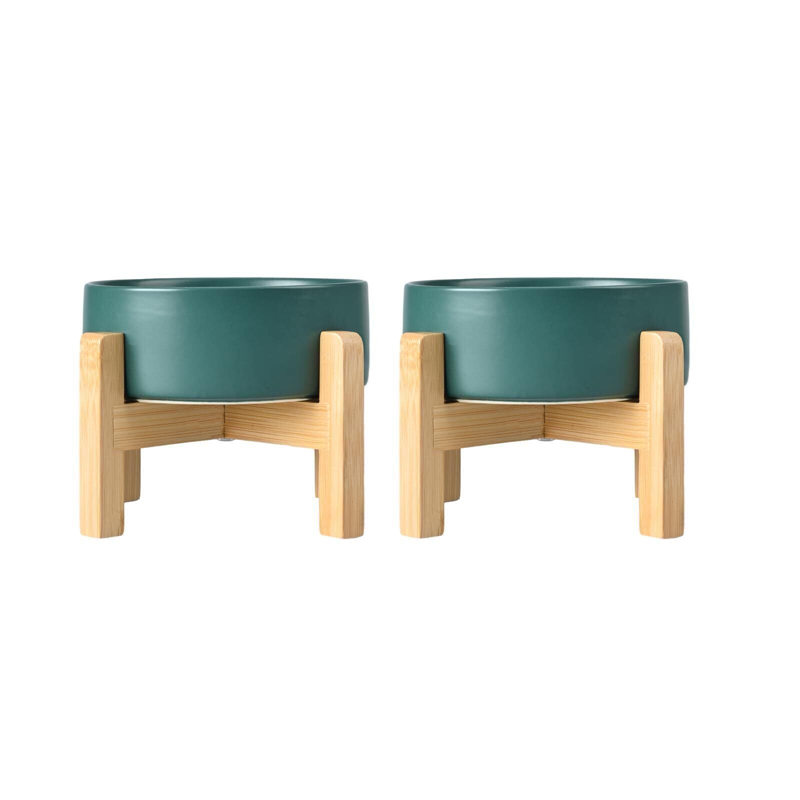 【2022最新】犬 餌入れ 陶器 ボウル 猫 ペット えさ 皿 水入れ 木製ボウルスタンド フードボウル 小型犬 2個 400ml グリーン
