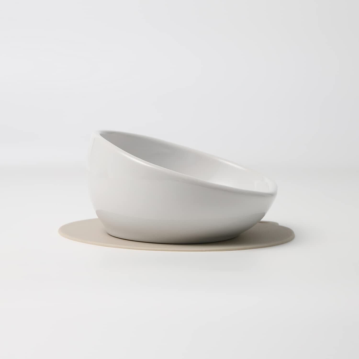 小型犬向けフードボウル、チビプレ。安定感がありこぼれにくい。そり返しがあるからこぼれにくい構造。電子レンジOK。電子レンジでの温めOK!! すべりにくい。フタとしても使えるシリコーンマット付き