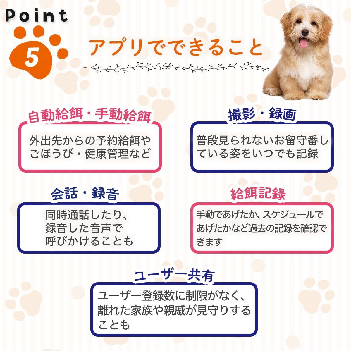 特徴 Android対応, iOS対応, カメラ, スマートアプリ, 給餌スケジュール