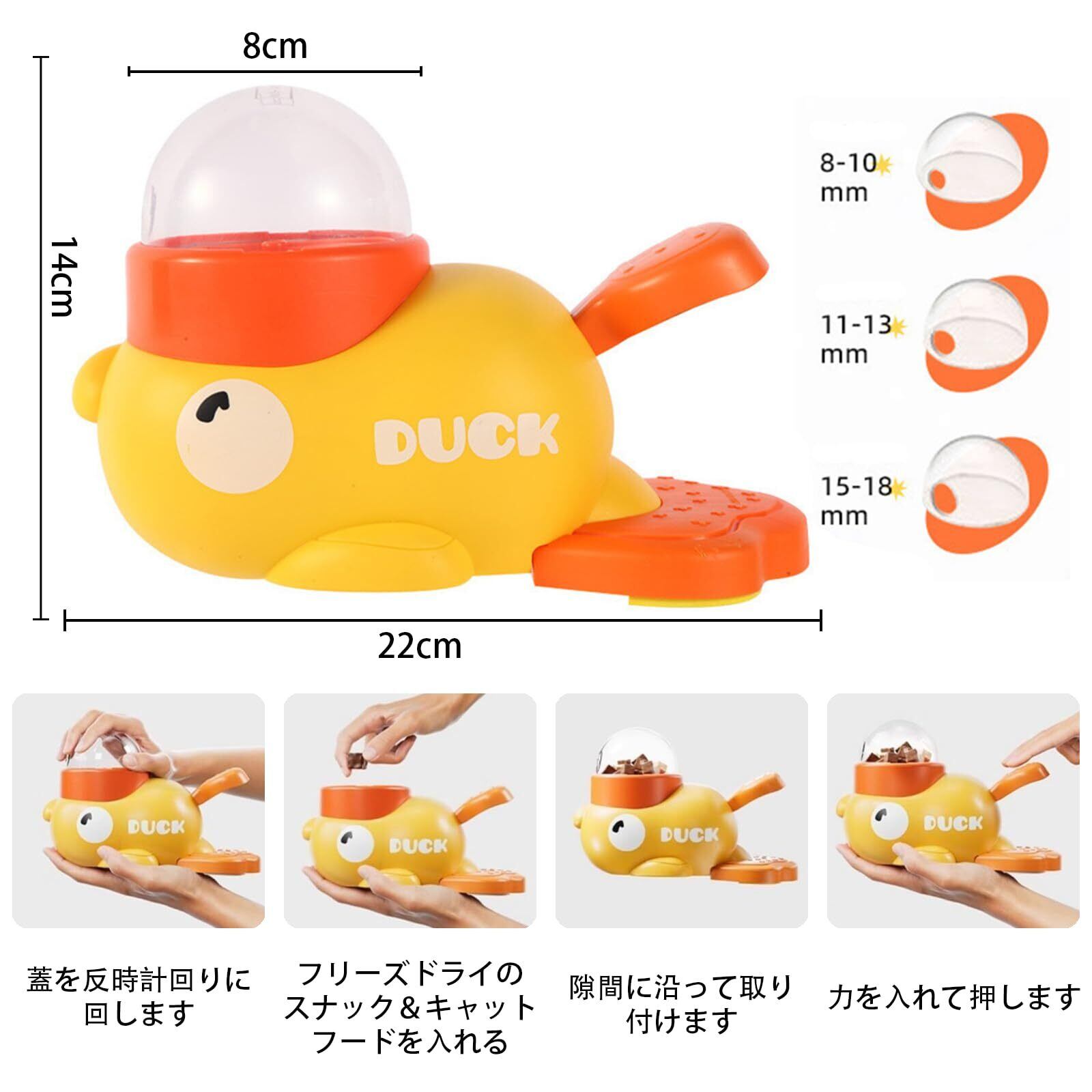【かわいい形】この自動給餌器は、かわいい黄色いアヒルの形をしています。ペットフィーダーとしても、ペットの知育玩具としてもお使いいただけます。ペットの好奇心を刺激し、給餌の楽しさを演出します。