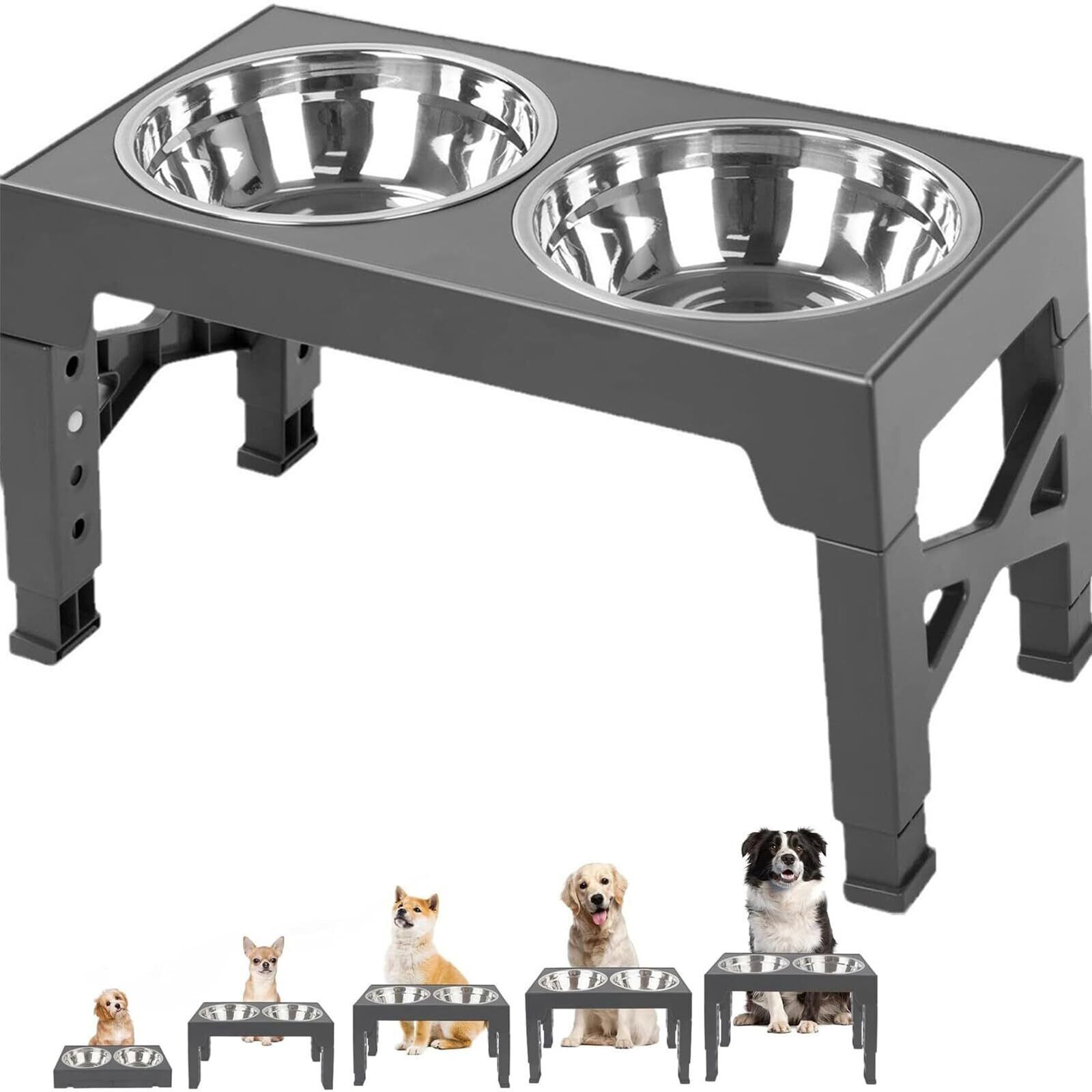 DFsucces 犬 食器台 中型犬スタンド フードボウル 餌台 ステンレスボウル高さ調節可能 4段階 高さ調節可能 ボウル2個 ボウル 取り外し可能 折り畳んで収納 洗いやすい