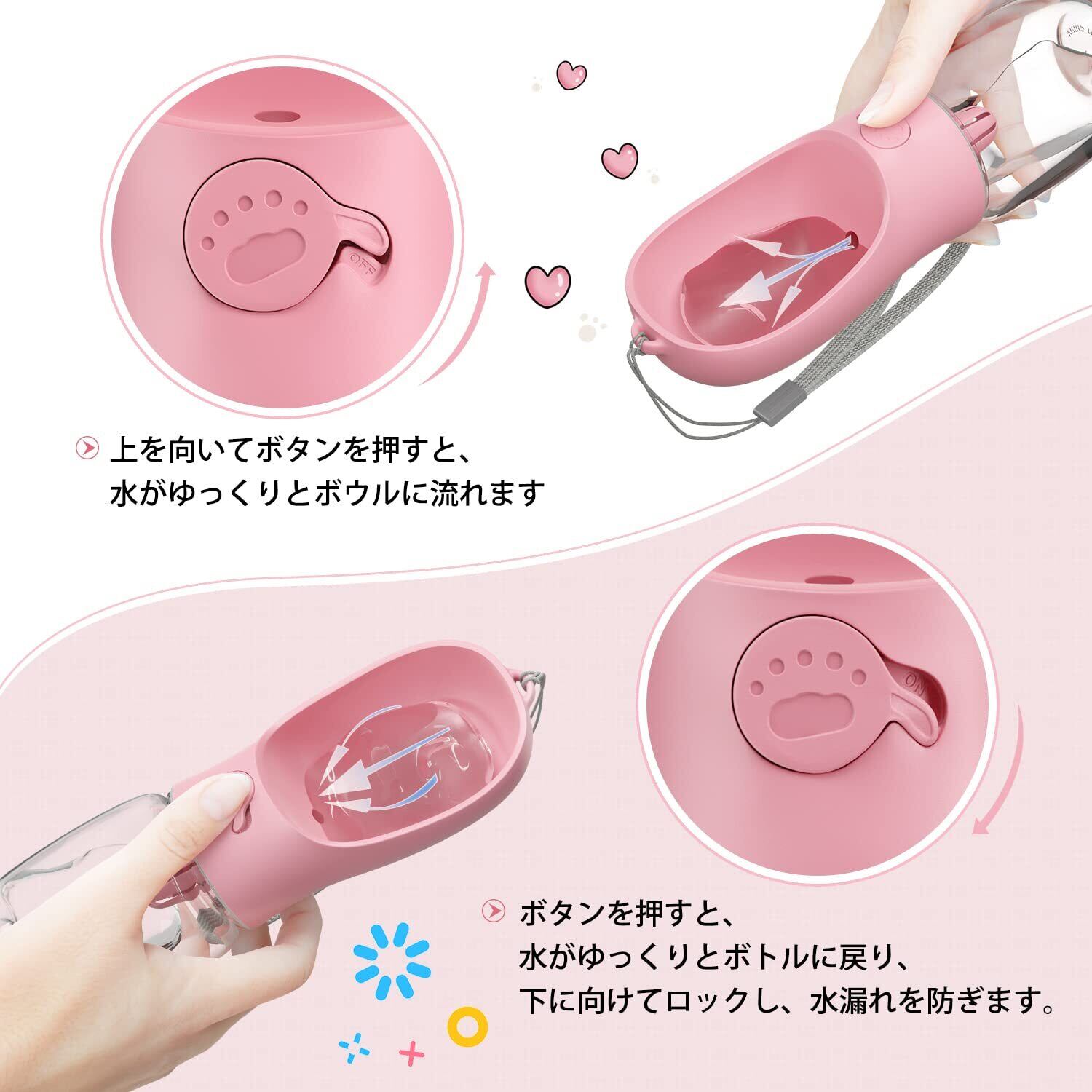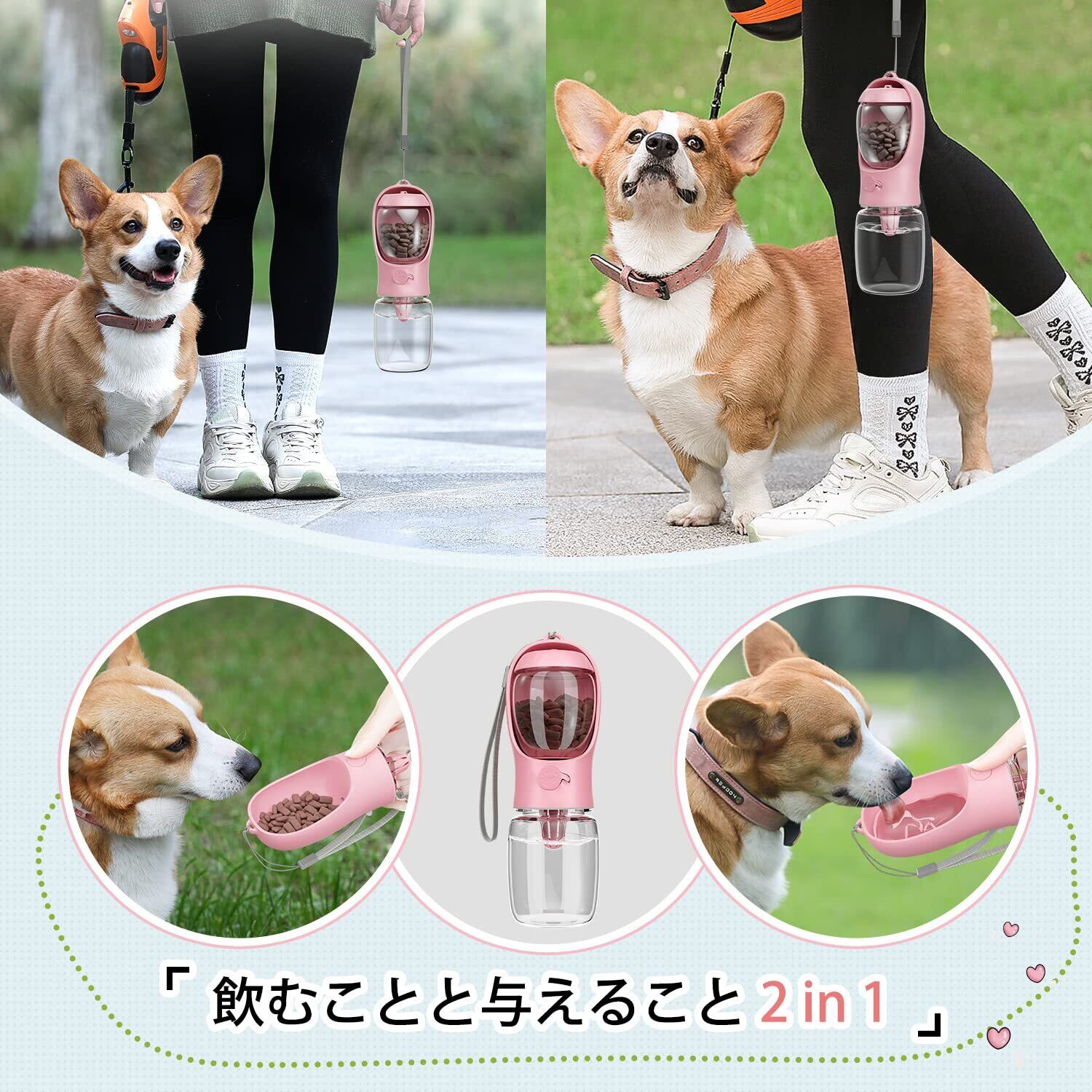 創優会ペットウォーターボトル ペット用水飲みボトル犬ウォーターボトル 犬 散歩 水 ペット水筒 ウォーターボトル 犬 みずのみ器 ペットボトル犬グッズ 水飲み おやつ 給水器 循環 外出 軽量 ケース ドライブ 旅行 ペット 車 用品 み ず 持ち運び 携帯 猫水 餌 漏れ防止 (Pink, 350ml + 100g)