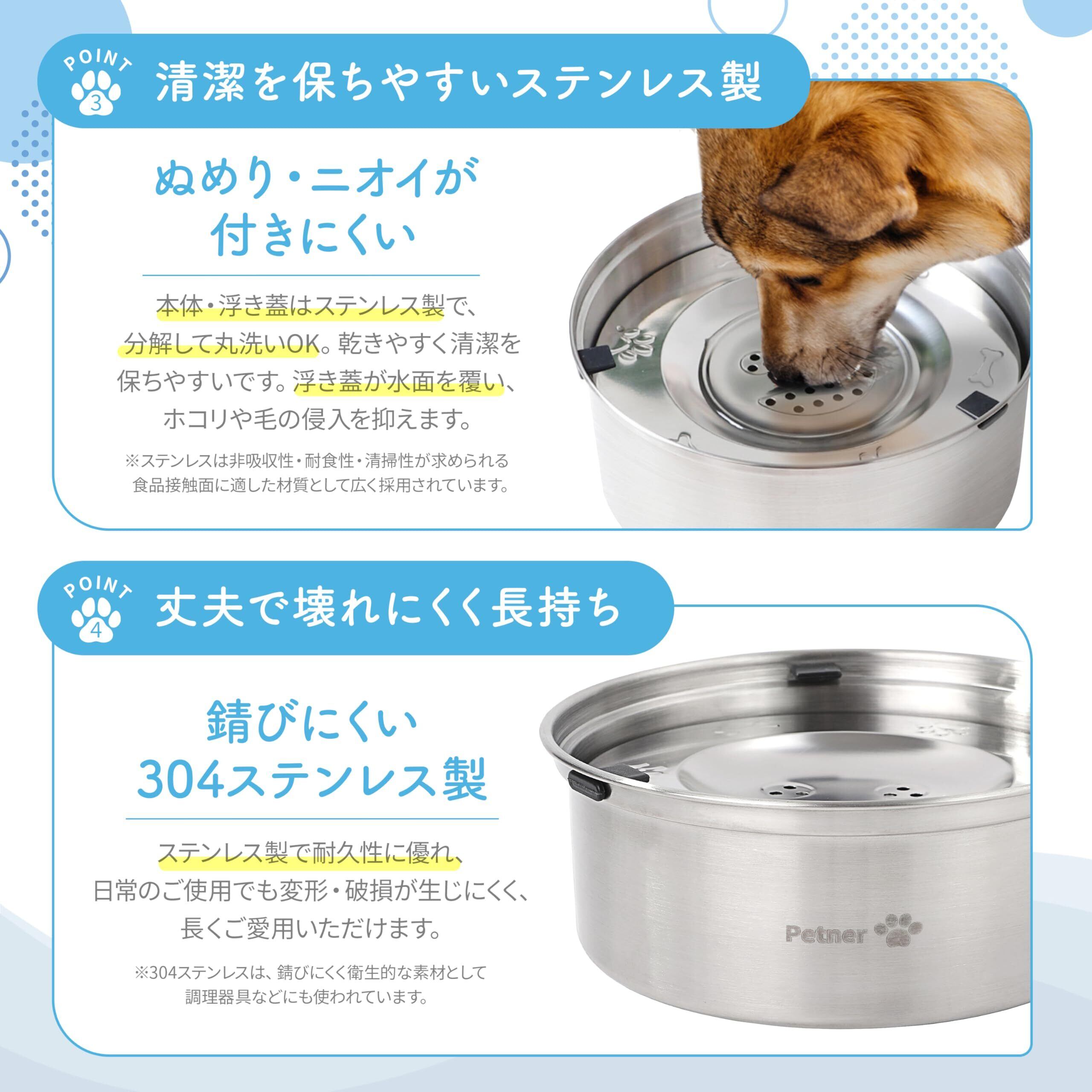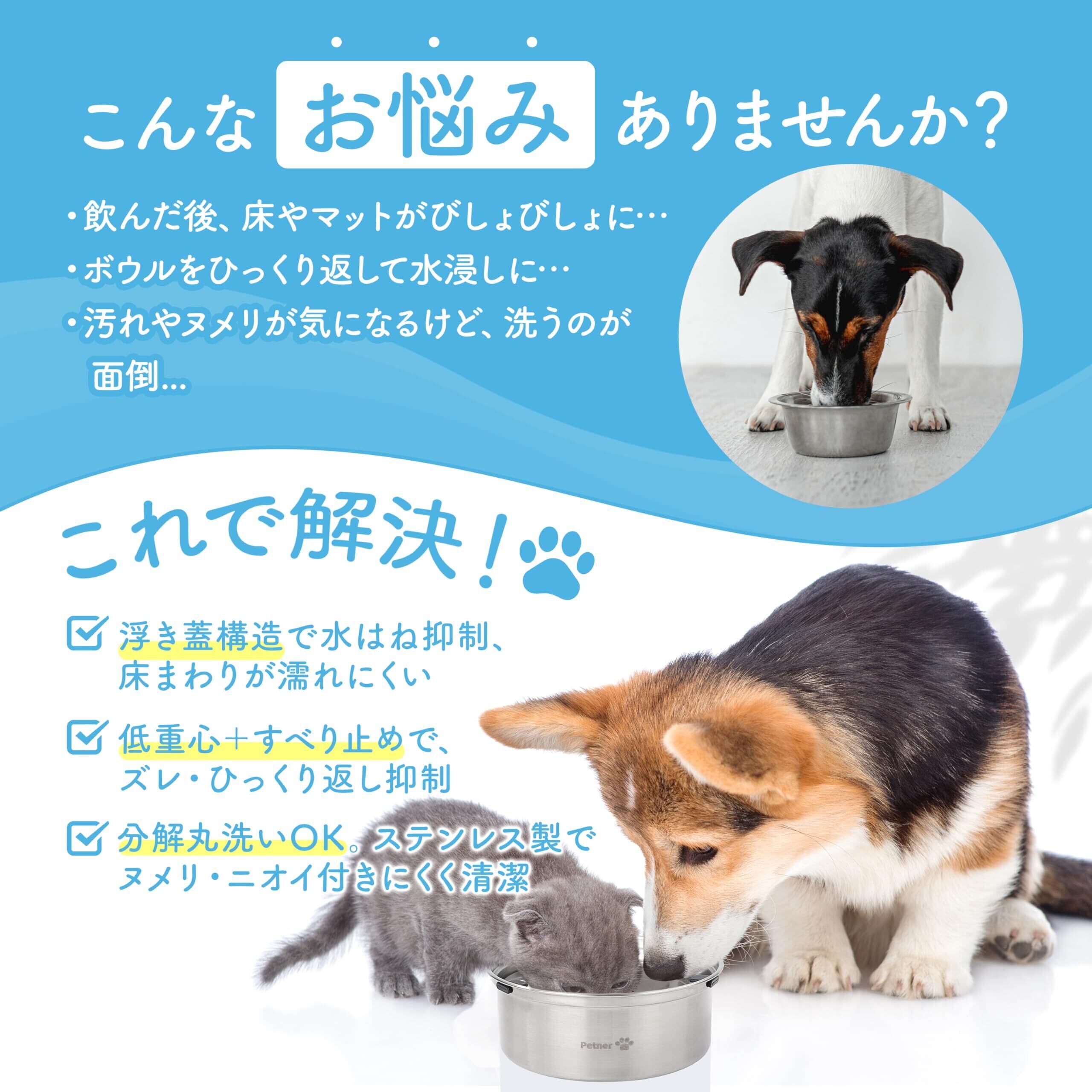 ペットナー ペット用水飲み器 犬・猫用 給水器 浮き蓋構造こぼれにくい ステンレス製 洗いやすい 長持ち 大容量 1L【現役獣医師監修】日本国内検査合格済み