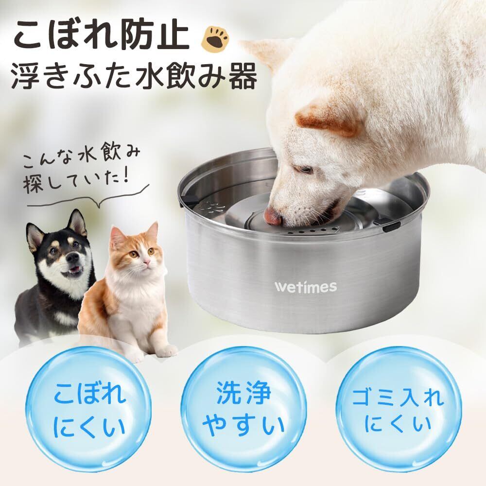 【2024新製品!浮きふた水飲み器】浮きふたが水を覆っているため、ペットちゃんの舌や前足で水を掻き出してもこぼれしにくいデザインになっています。床やフローリングの濡れ減少し、お掃除が楽になります。