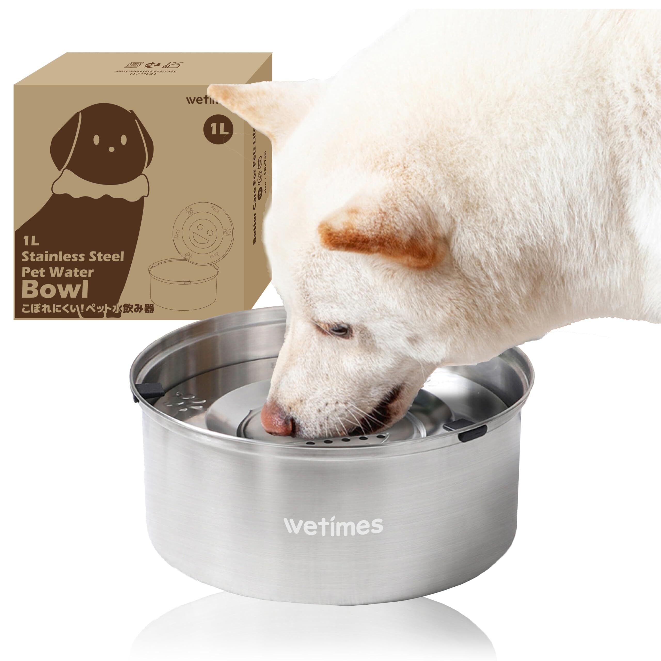 【在庫セール】犬用水飲み器 大容量1L こぼれ防止 溢れにくい カビしない ステンレス製 洗いやすい 清潔 ペット給水器 猫 犬 ペットウォーターボウル (シルバー, 容量1L)