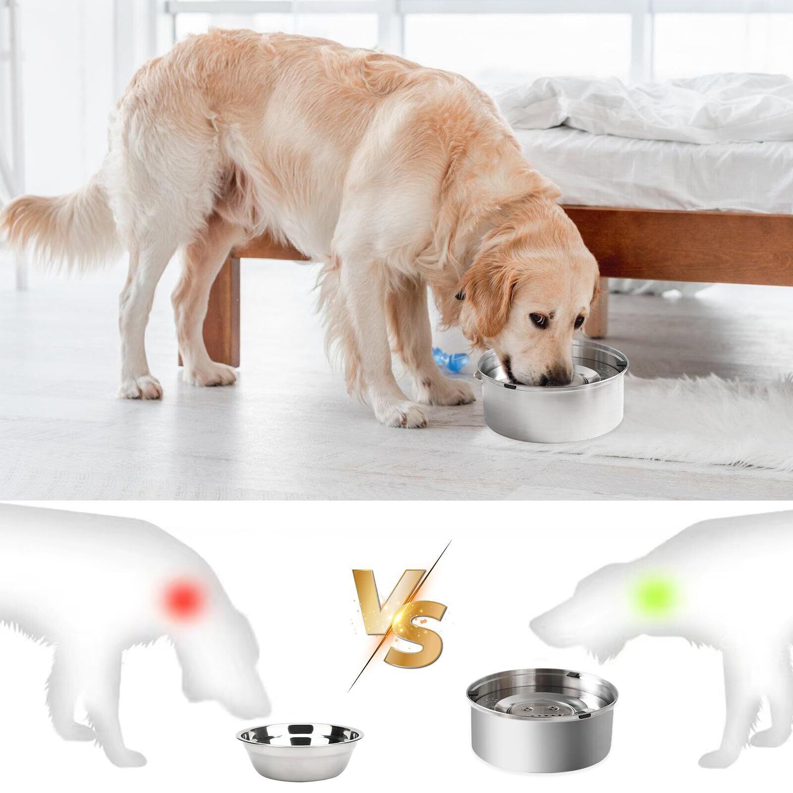 犬用水飲み器 大容量3L こぼれ防止 溢れ防止 カビ防止 ステンレス製 洗いやすい 清潔 ペット給水器 ステンレス鋼犬用ボウルこぼれ防止大容量ドッグフードウォーターボウル低速給水器、犬、猫用旅行用ウォーターボウル (シルバー, 大容量3L)