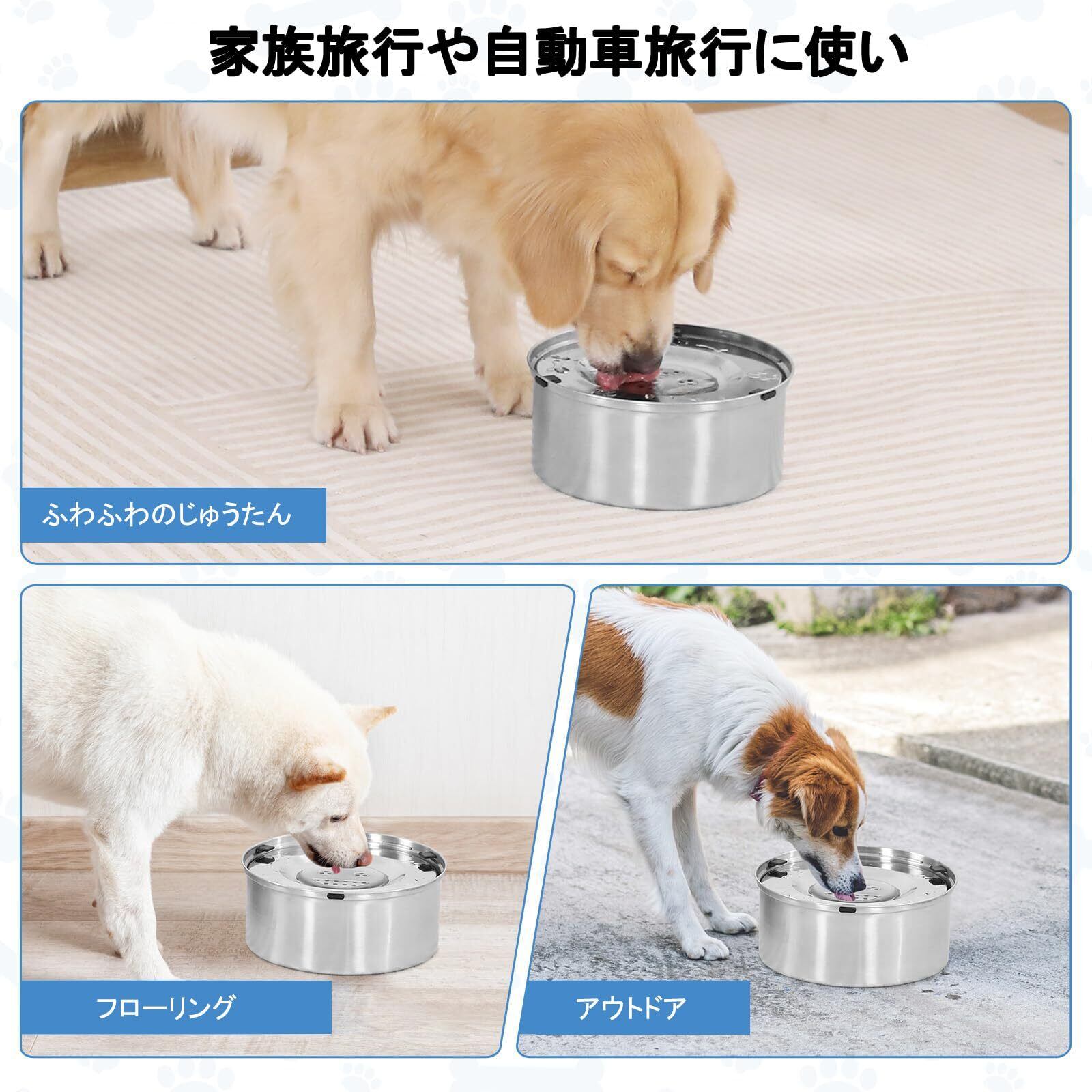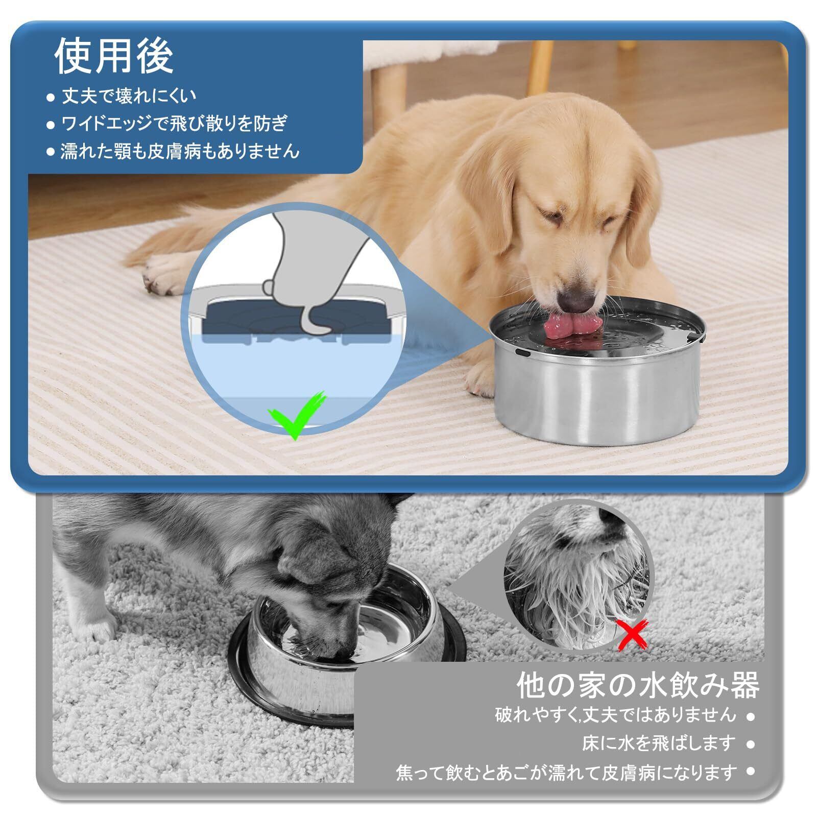 【水を清潔に保ちやすい】フタが水を覆うので、ゴミやホコリ、ペットの毛などに水が入りにくくなります。汚れによる水替えの回数を減らすことができます。3lという大容量なら、お水を補充する回数を減らすことができます。大型犬や中型犬にも十分な水分補給ができるので、多頭飼いの家庭にも最適です。