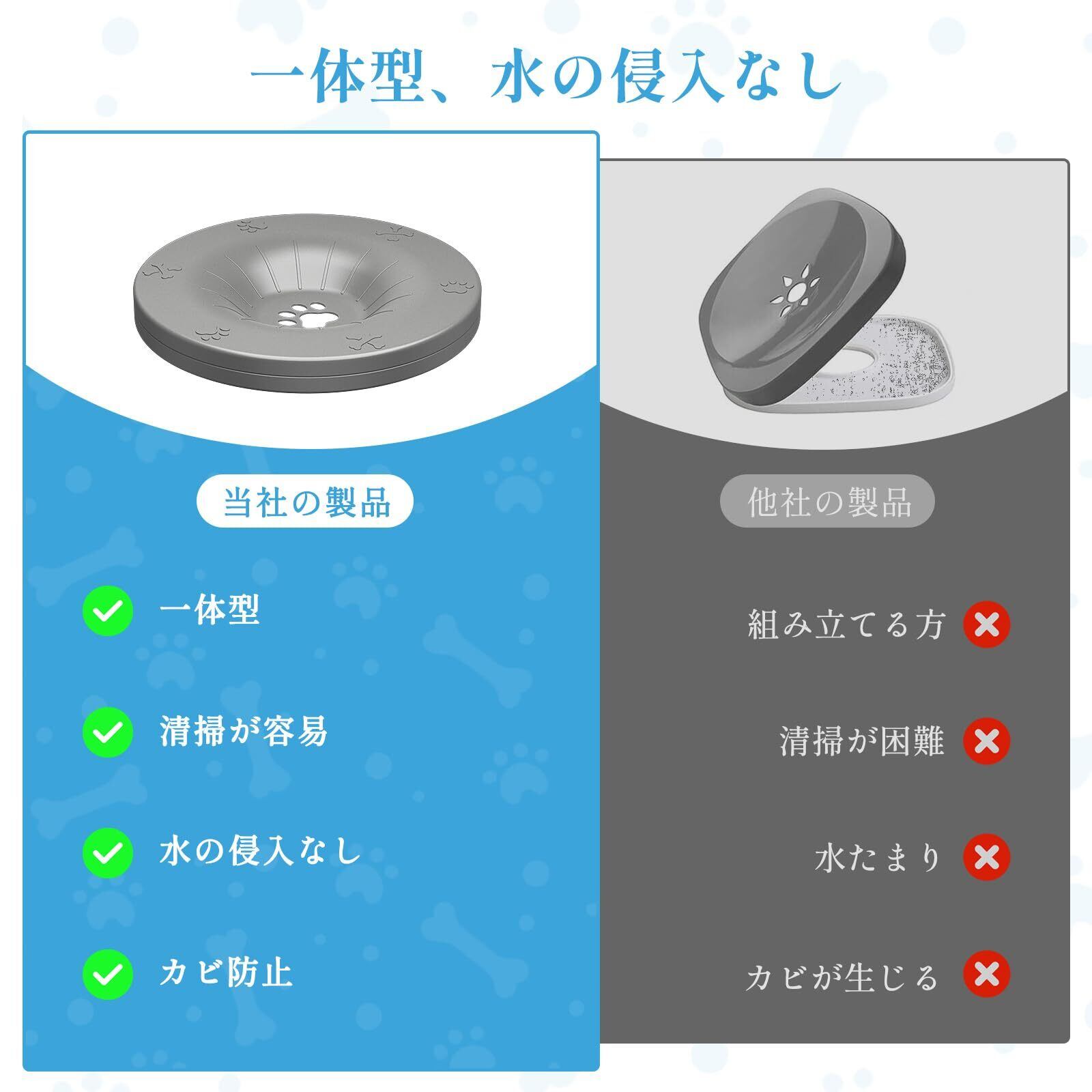【浮遊式構造|健康な飲水をサポート】 この犬 みずのみ器 浮遊ディスク付けが犬の飲水速度を自然に調整し、むせや水過飲みを防ぎます。ペットの鼻や顔が直接水に浸かるのを避け、毛づまりや皮膚トラブルの予防に貢献します。また水面の塵芥混入を防ぎ、清潔なペット水飲み器を長時間維持し、愛犬の健康な飲水習慣を促進します。