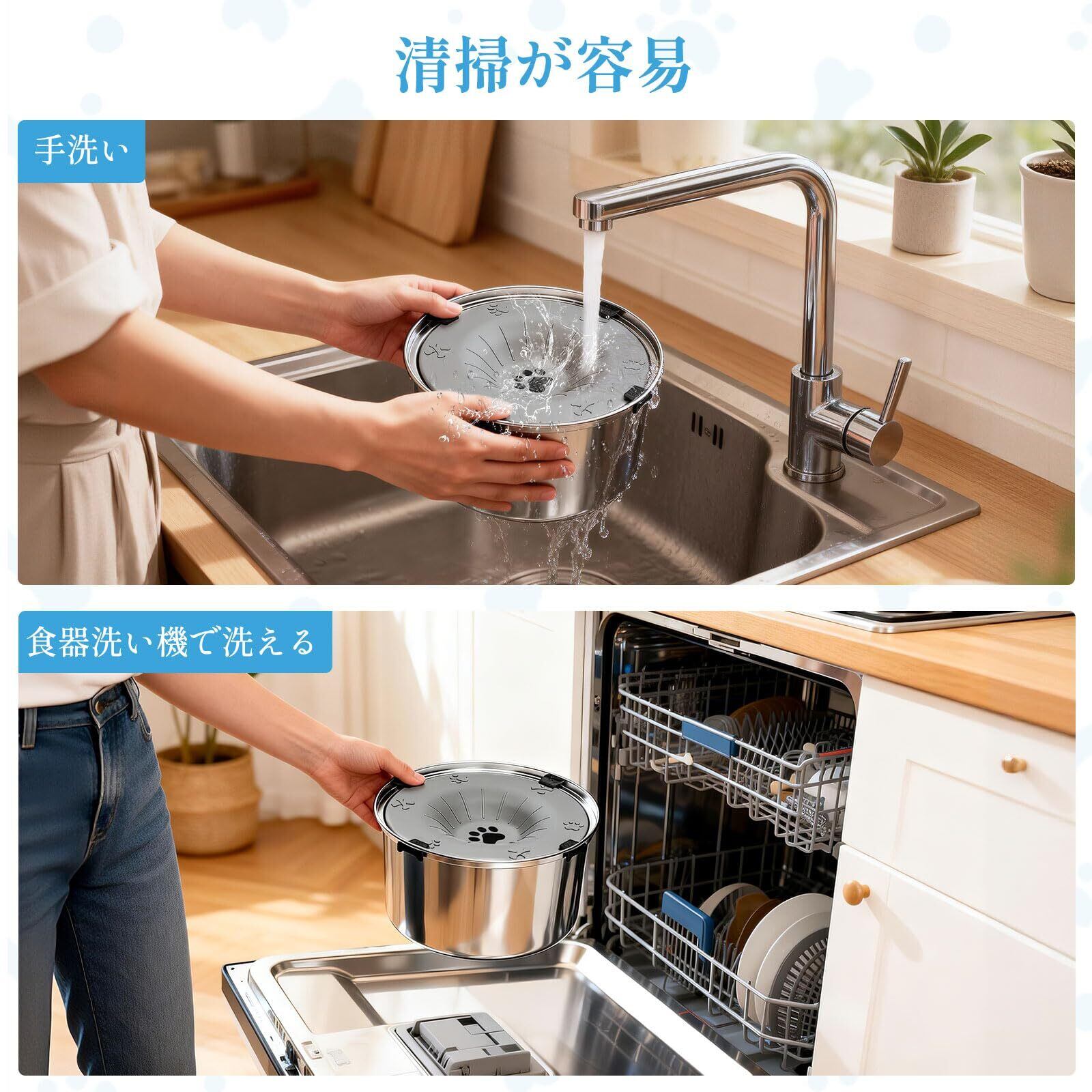 【安全素材|ステンレス&PP 製|耐久性抜群】 この犬 水飲み器は高品質のステンレス製、浮盤は安全な PP 素材を採用し、無臭・無害でペットの健康に安心です。ステンレス製の特長で防錆性に優れ、傷や擦れに強く長期使用に耐えます。水洗いだけで簡単清掃でき、汚れが残りにくく衛生的です。ペット給水器としての安全性と耐久性を両立した高品質設計です。