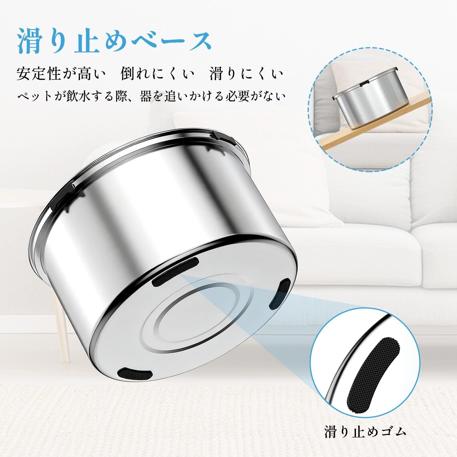 ぼれない設計&飛沫防止|室内を清潔に維持】 このペット 水飲み器は円柱形状と浮遊式 PP 製フロートの二重設計で、中大型犬のぶ飲みや活発な飲水動作でも水の飛沫やこぼれを大幅抑制します。ペット こぼれない 水入れ給水器として、床や畳、カーペットをいつも清潔に保ち、掃除の手間を大幅削減します。犬 水飲み だけでなく猫 水飲み にも対応し、室内はもちろんペットルームやケージ周りでも安心して使用できます。