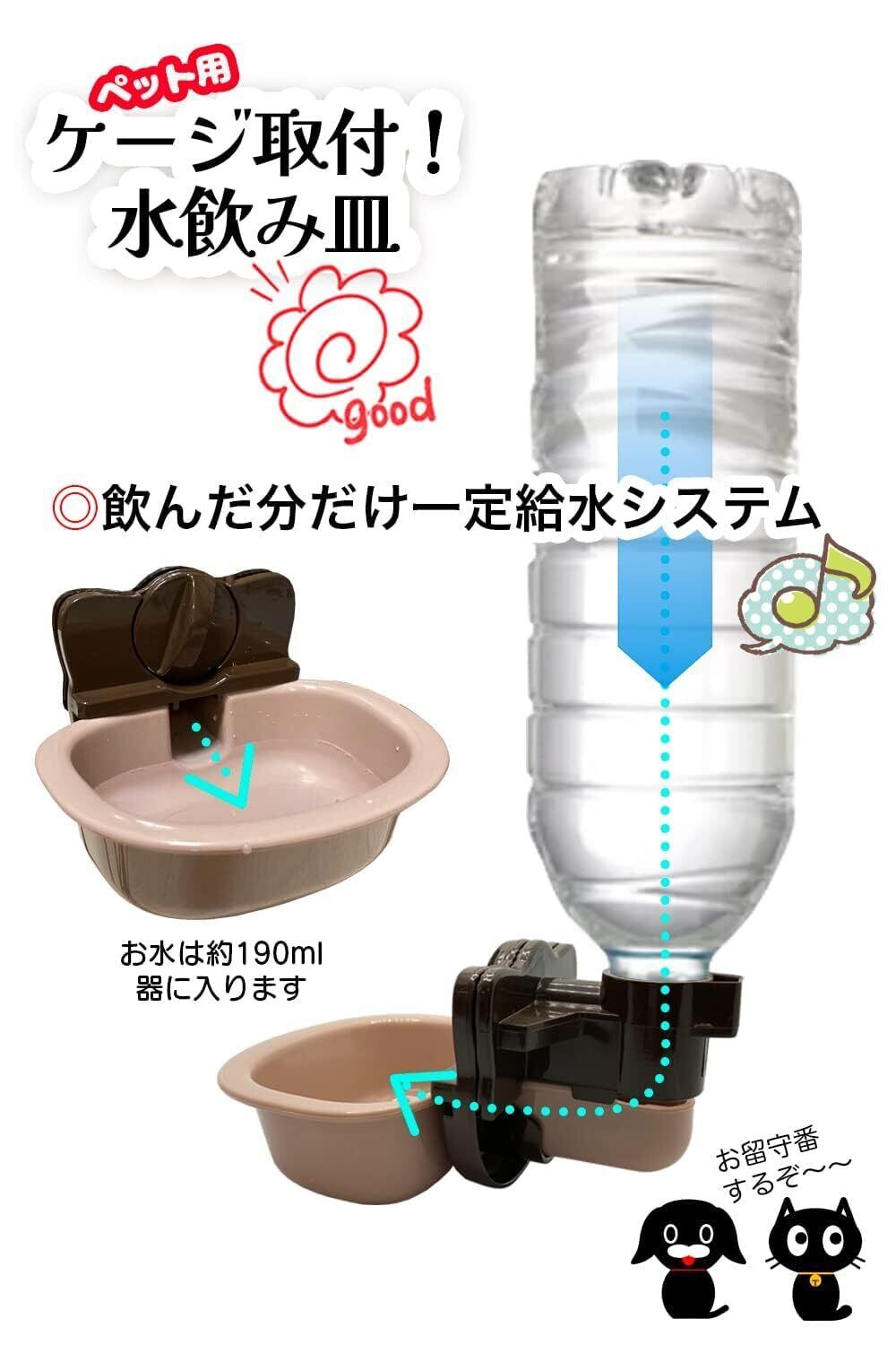 Fun Pet ペット 犬 猫 ケージ 取付型 水飲み 給水器 自動 給水 ペットボトル 使用可能 ウォーターボトル 食器 留守番 取付説明動画 (ココア)