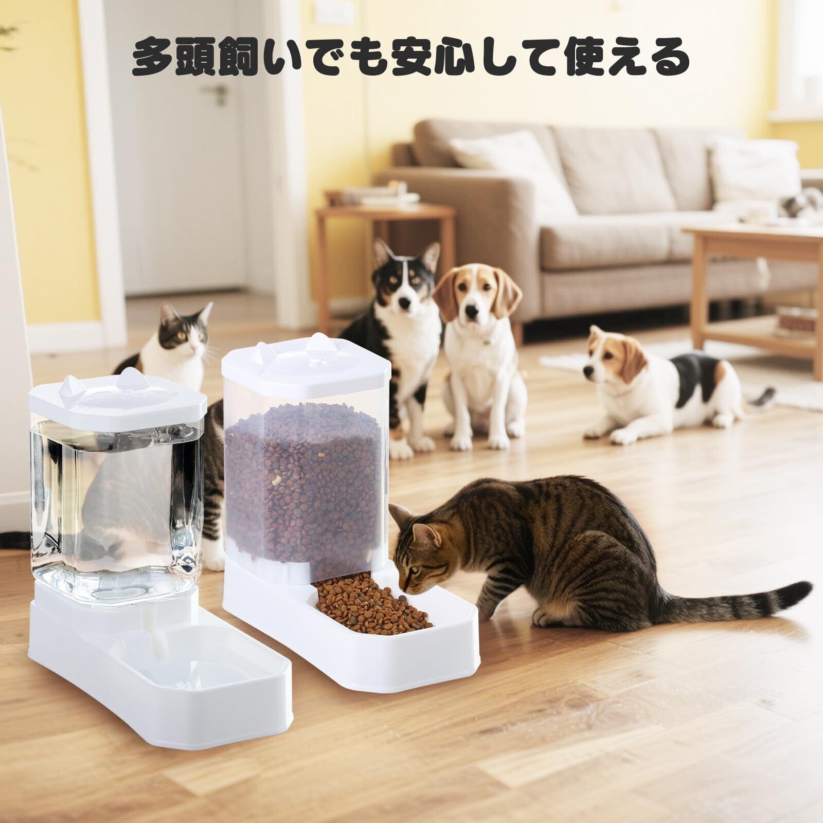 自動給餌・給水で外出中も安心: 電源不要の重力式デザイン。自然にフードと水を補充するので、仕事中や旅行中でもペットの食事をしっかりサポート