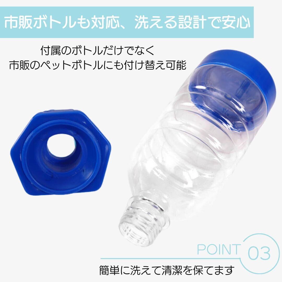 【市販ボトルも対応、洗える設計で安心】付属のボトルだけでなく、市販のペットボトルにも付け替えできます。ペットの健康を第一に考えた設計で、簡単に洗えて清潔を保てるため、安心してお使いいただけます。