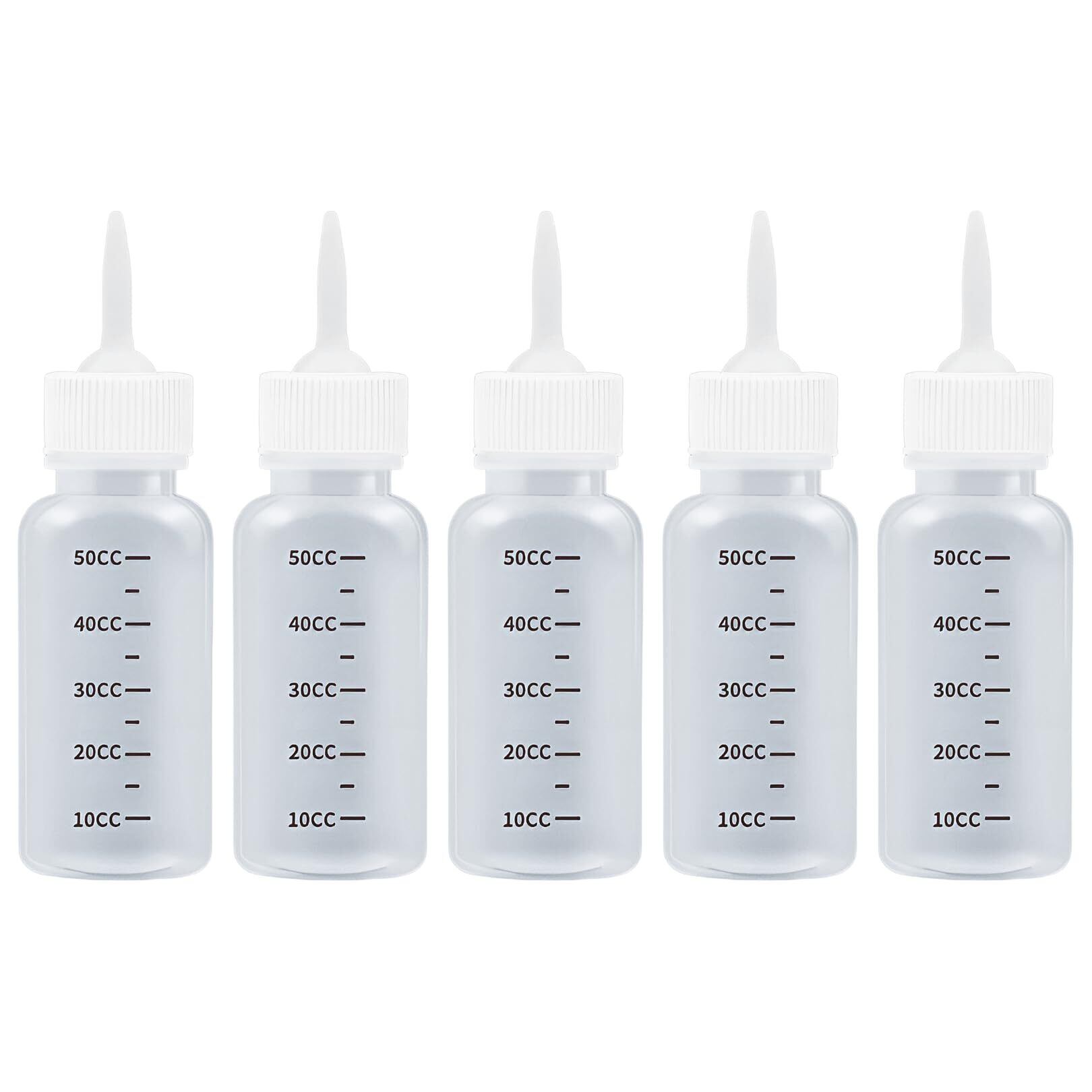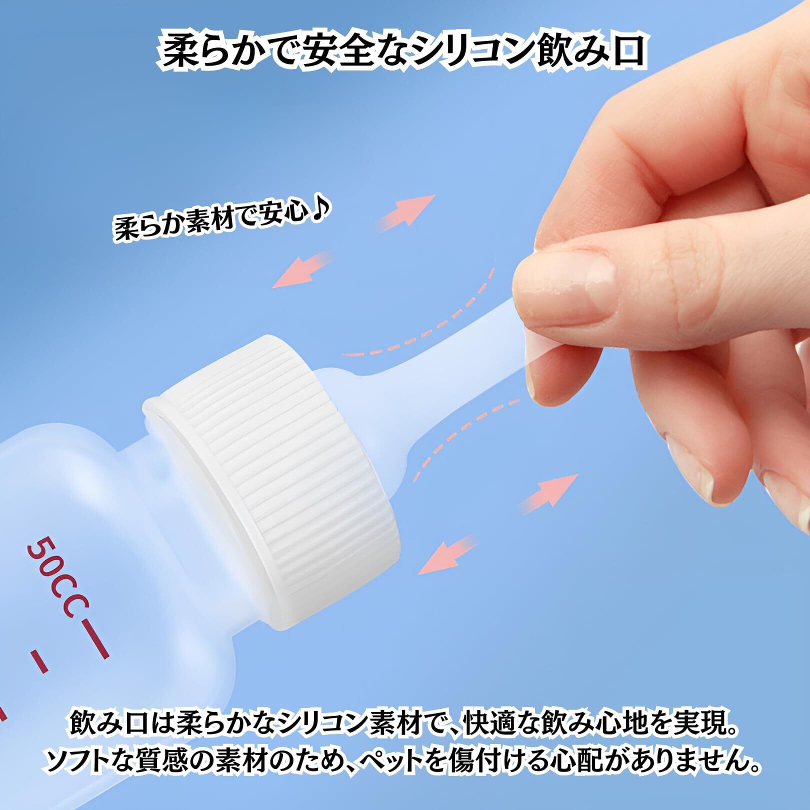 【赤ちゃんペット用の哺乳瓶】ペットの赤ちゃんのための50ml哺乳瓶5本セットです。生まれたての子猫や子犬に最適な3mmシリコン飲み口を採用し、柔らかく自然な飲み心地を提供します。先細タイプの飲み口となっておりますので、ハムスターやウサギなどの小動物用としてもお使い頂けます。