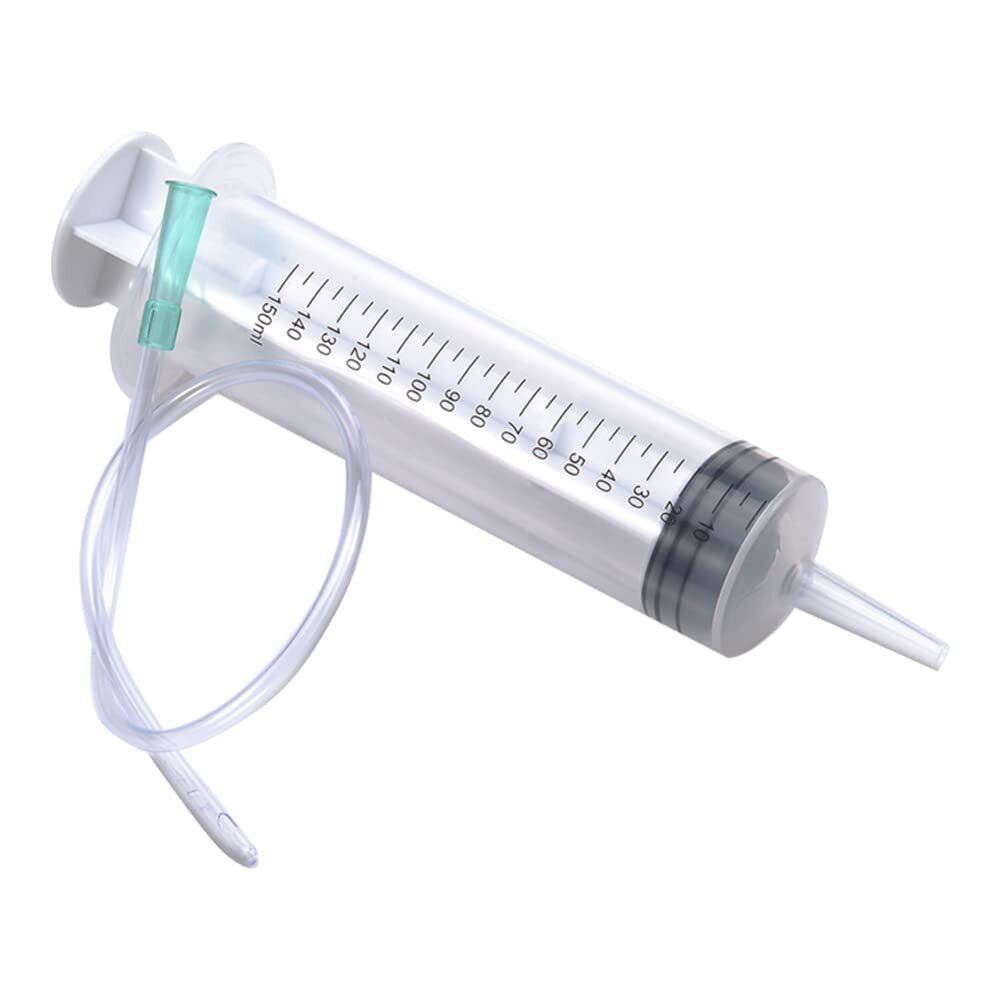 プラスチック シリンジ ポンプ 注入型計量容器 60/150ml ノズル チューブ 付き 洗浄 給水 給餌 動物 犬 猫 ペット 介護 多目的用 (150ML)