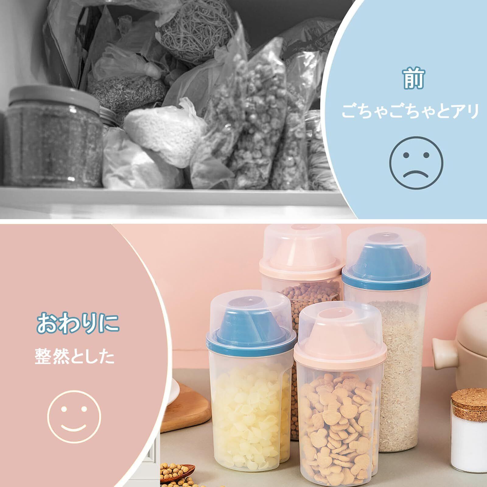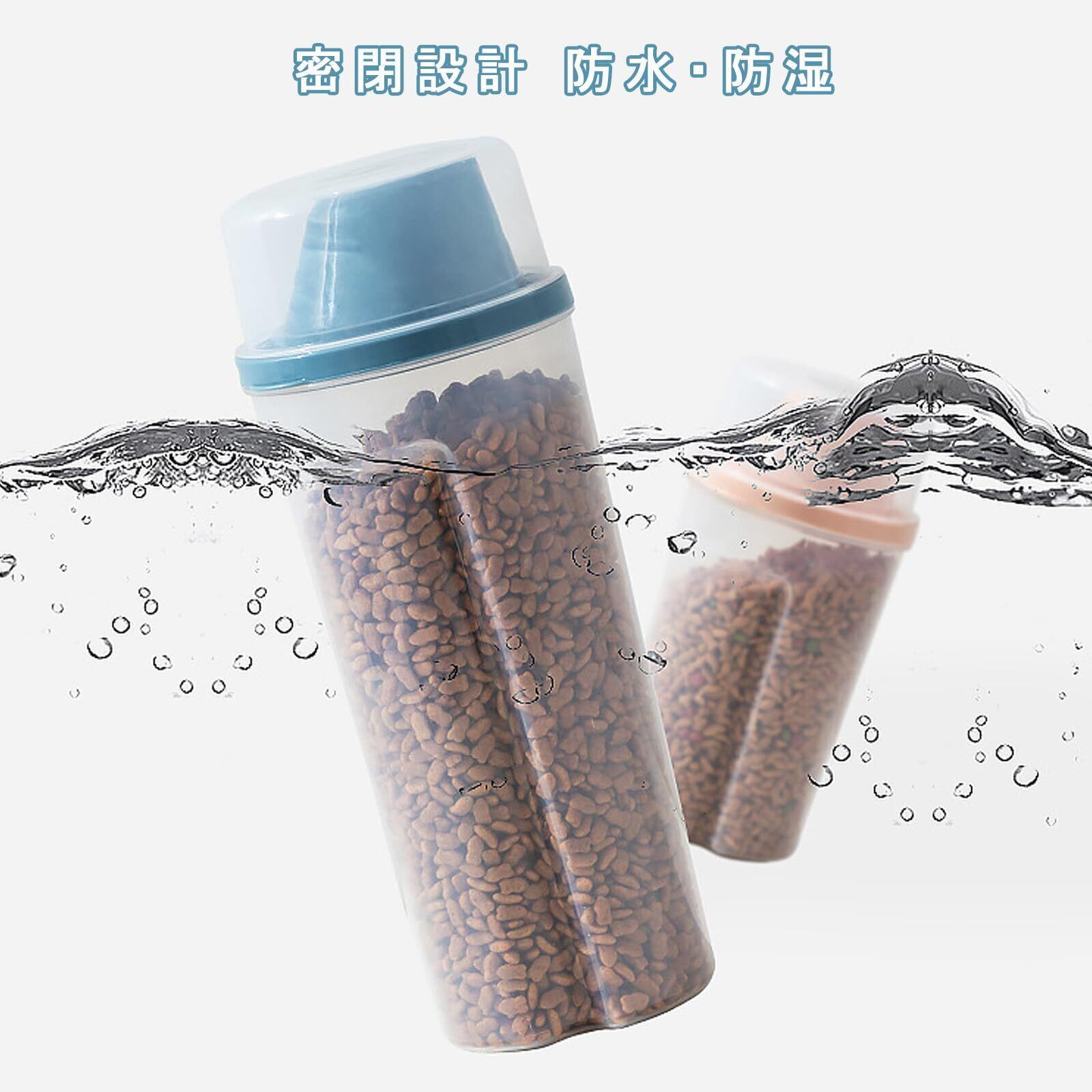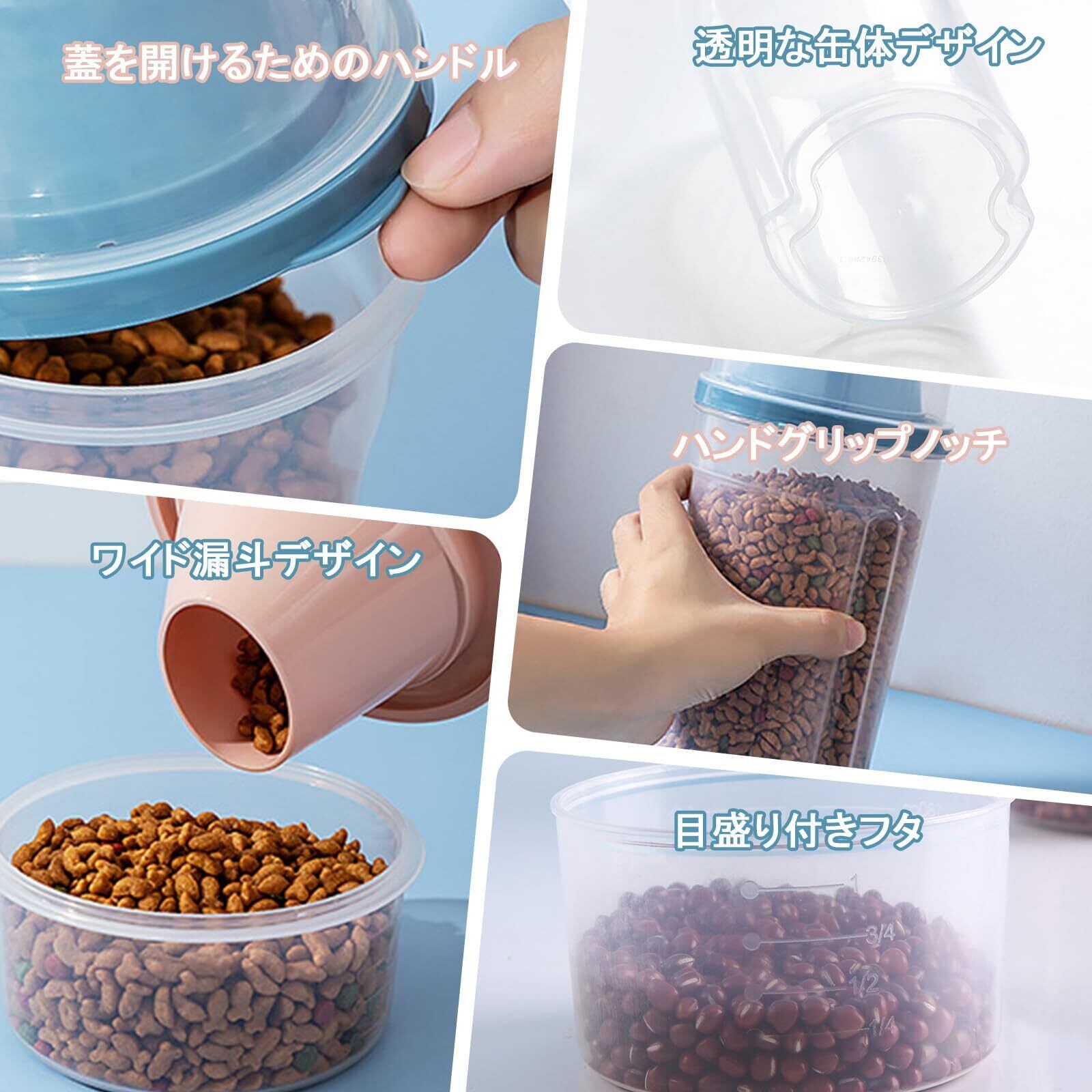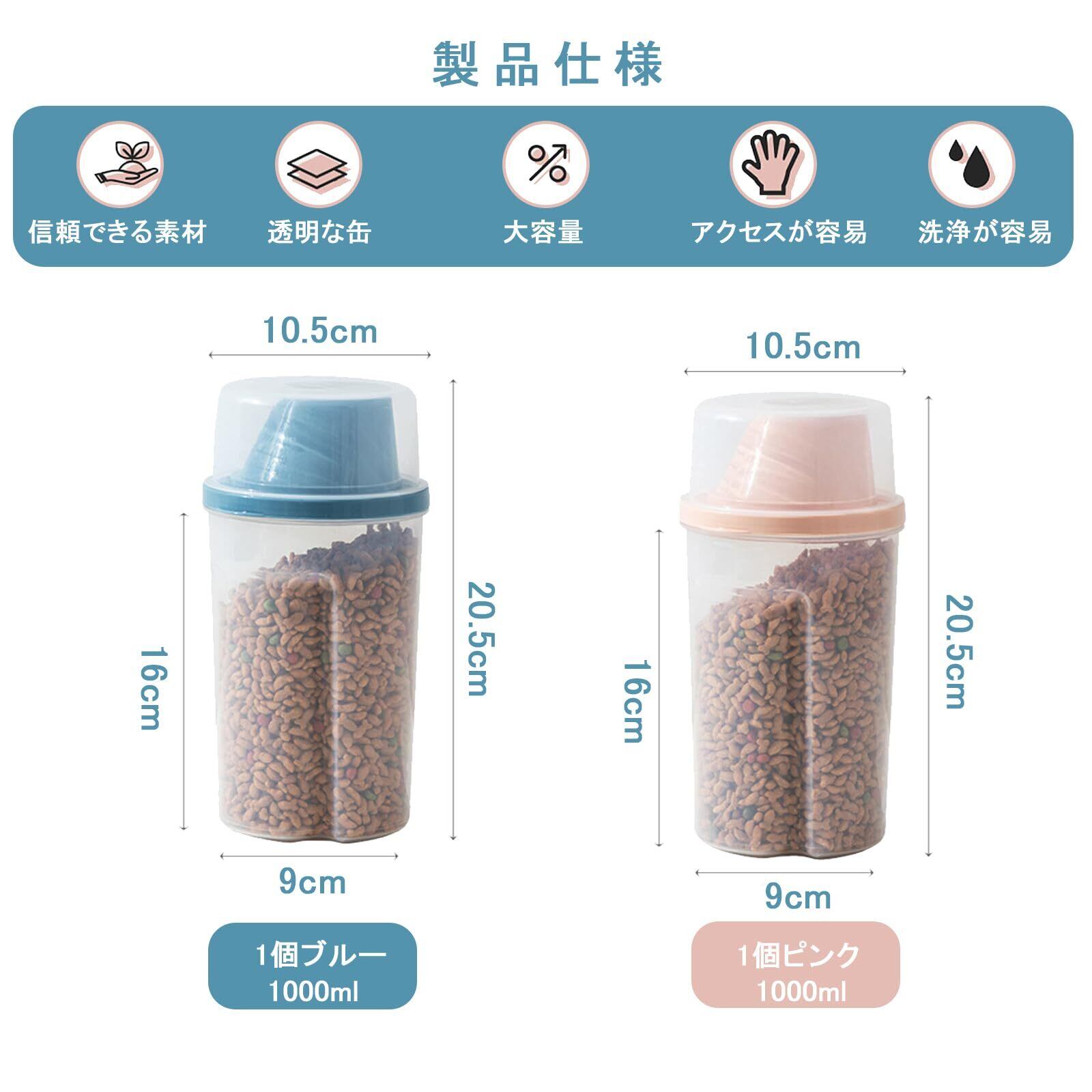 フードストッカー 1000ML フードストッカー 透明ストッカー キャニスター 密閉 大容量 鮮度 湿気防止 キープ 計量カップ付き ペットフード保存 食材 調味料 犬 猫餌 ドライフード 2個 (ピンク+ブルー)