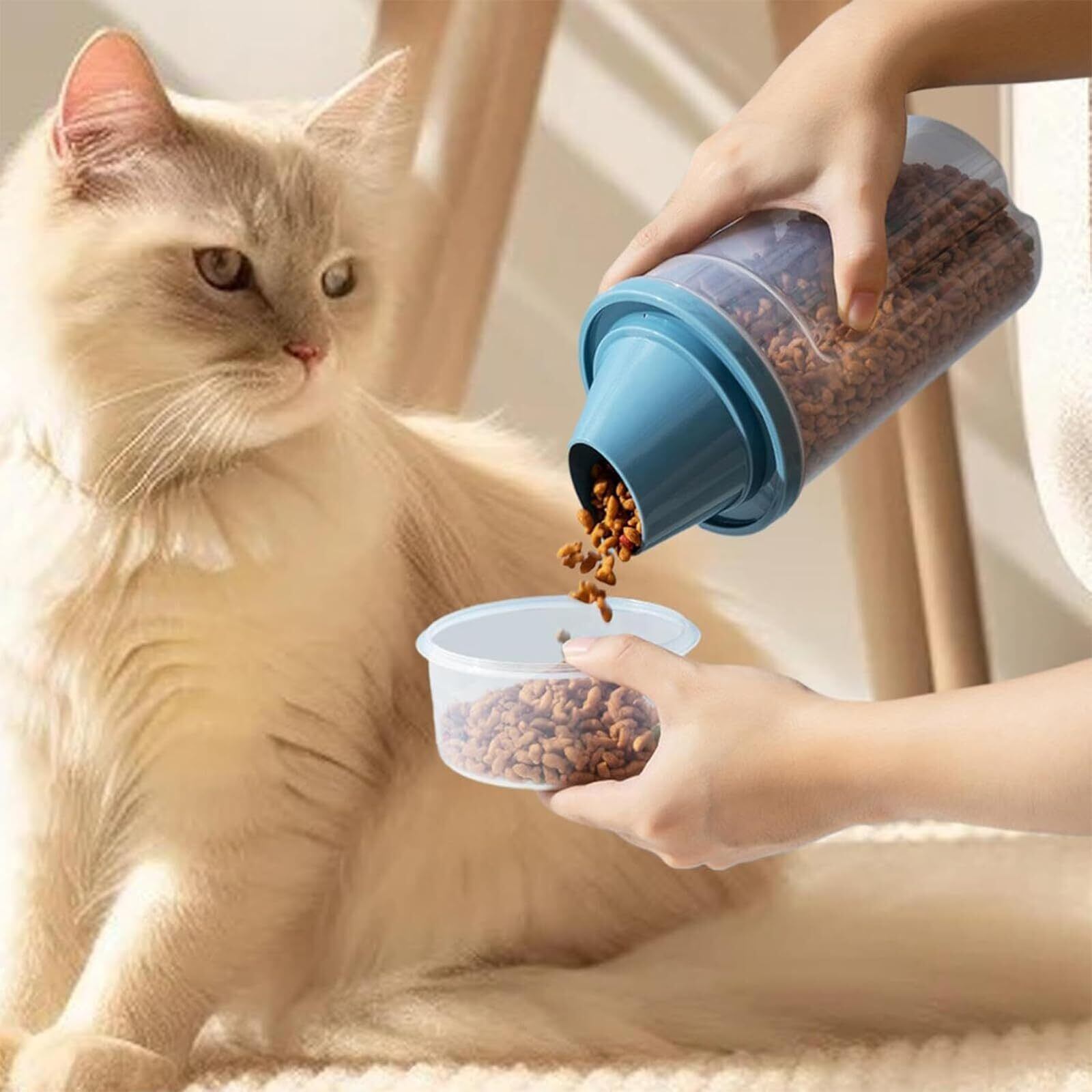 【精密な計量】付属の計量カップデザインは、ペットの食べ物の量を簡単に制御でき、飼育をより科学的にし、ペットの健康な生活を保護します。
