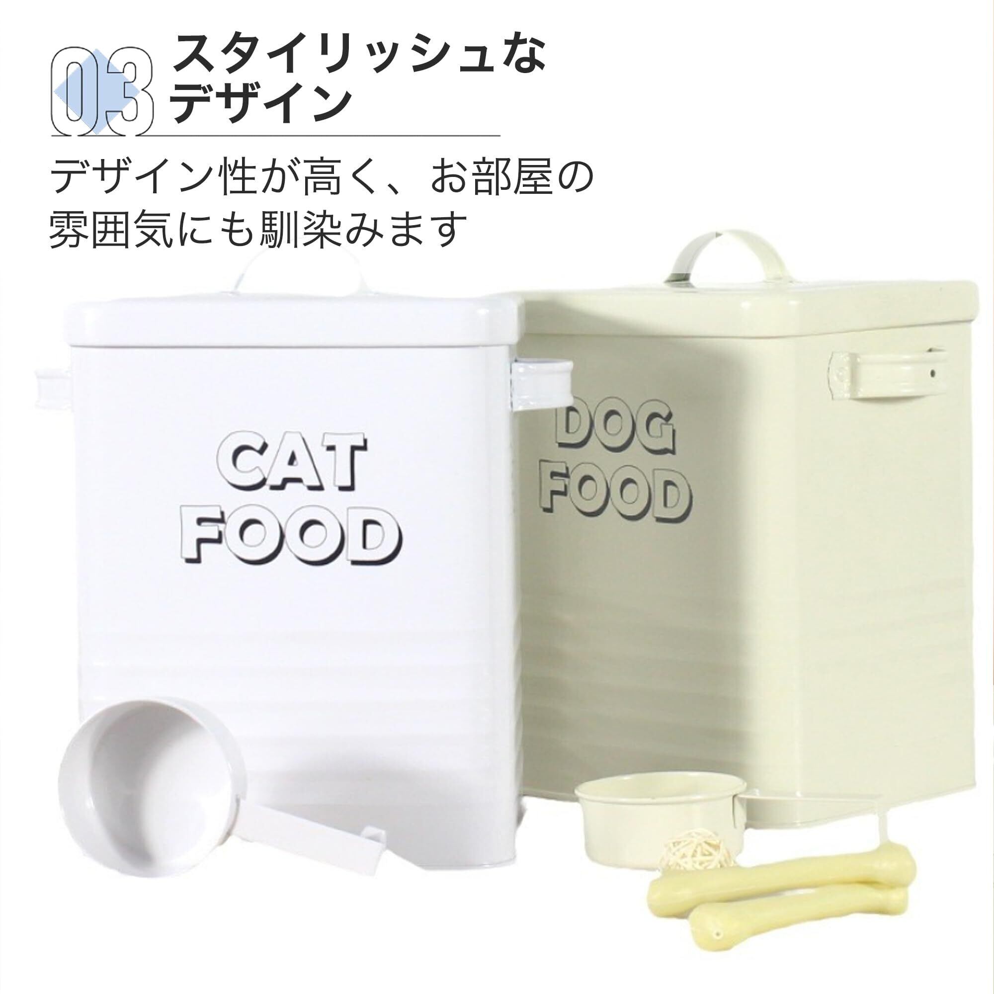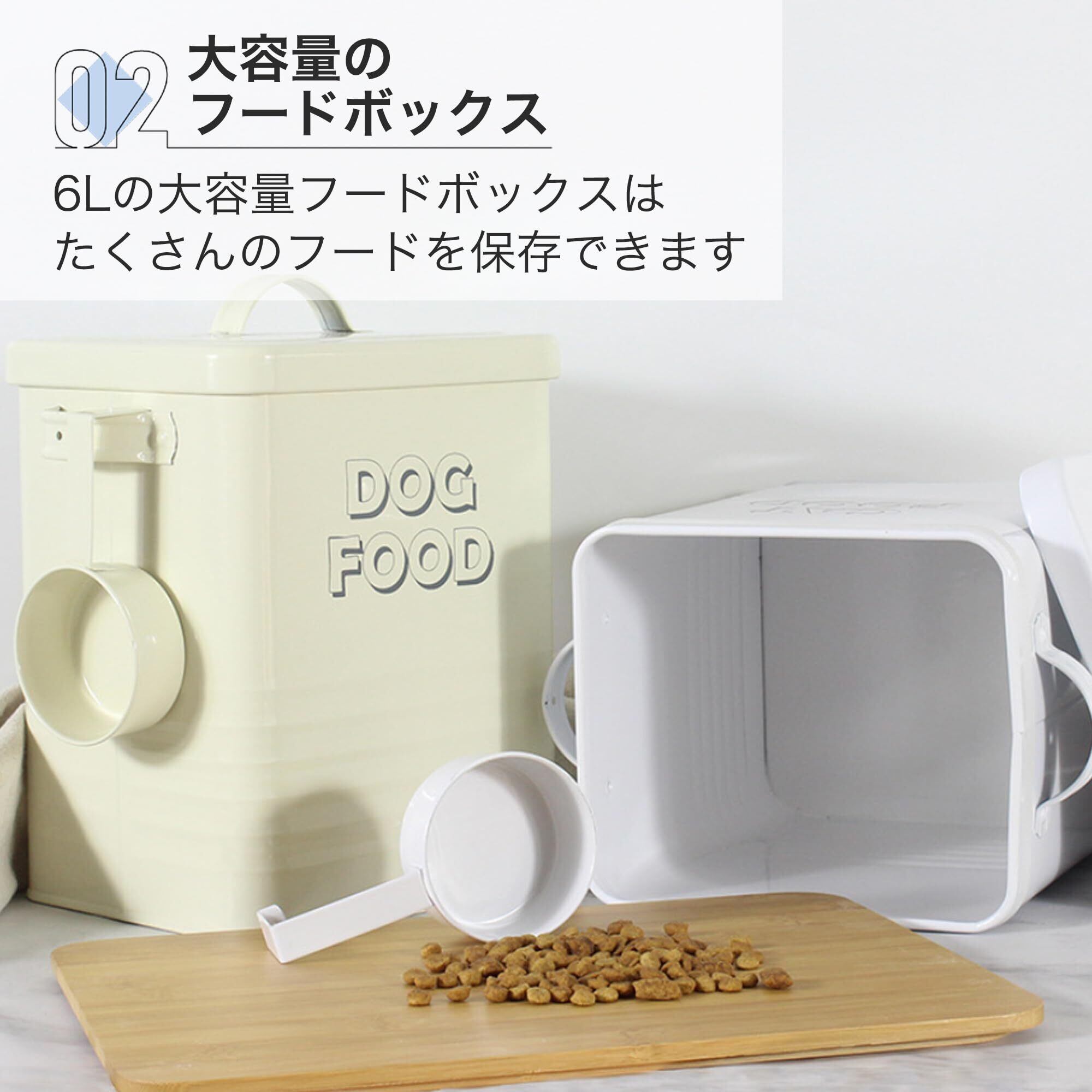 【新鮮さをキープします】 蓋付き収納ボックスで、ペットフードを新鮮に保てます。 大切なペットへの餌やりをより手軽に行うことができます。