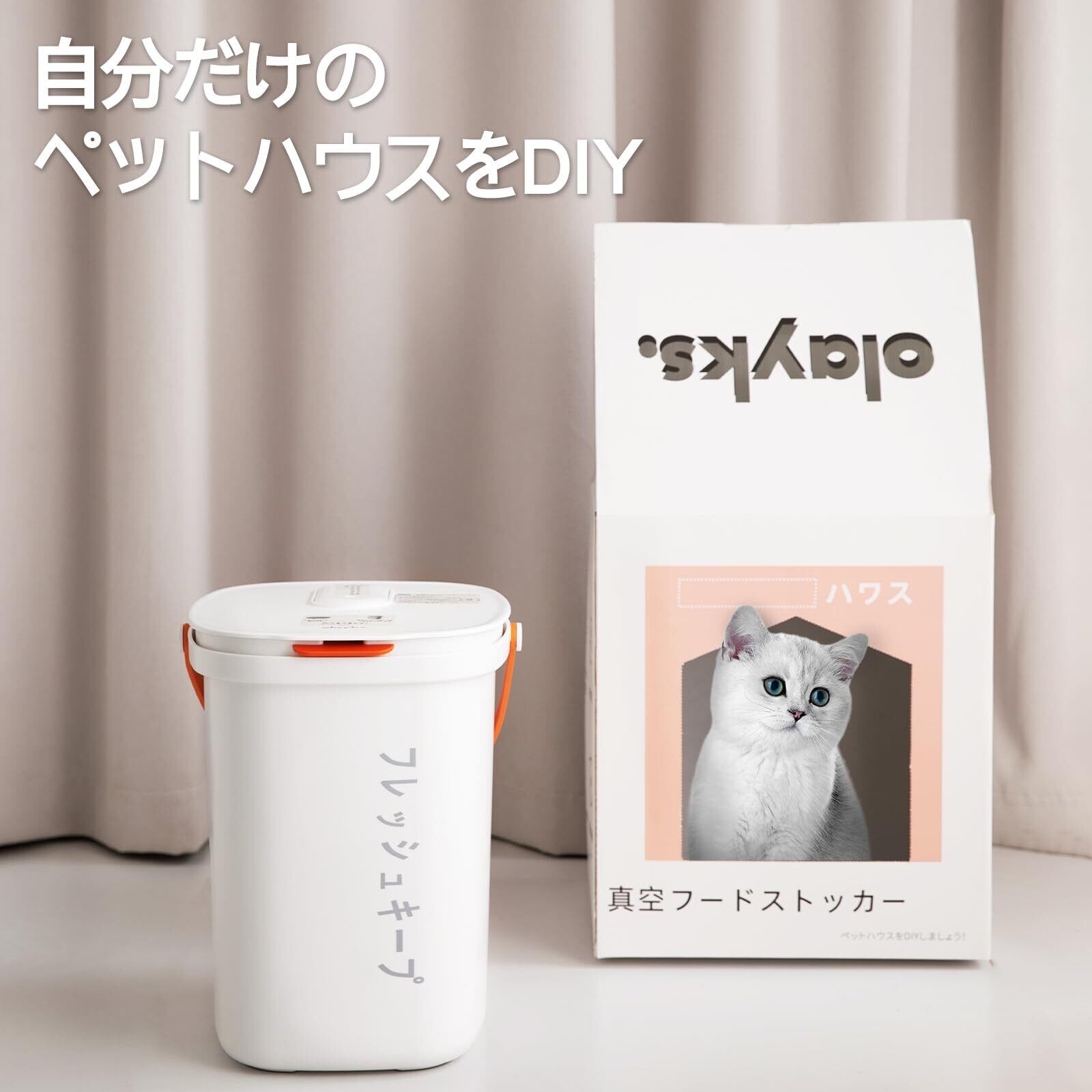 【低騒音設計】Olayks真空容器(ペットフードストッカー)は、わずか40デシベルの静かな動作音設計です。騒音は非常に低く、睡眠中や仕事中に邪魔されることはなく、ペットにも全く影響を与えません。
