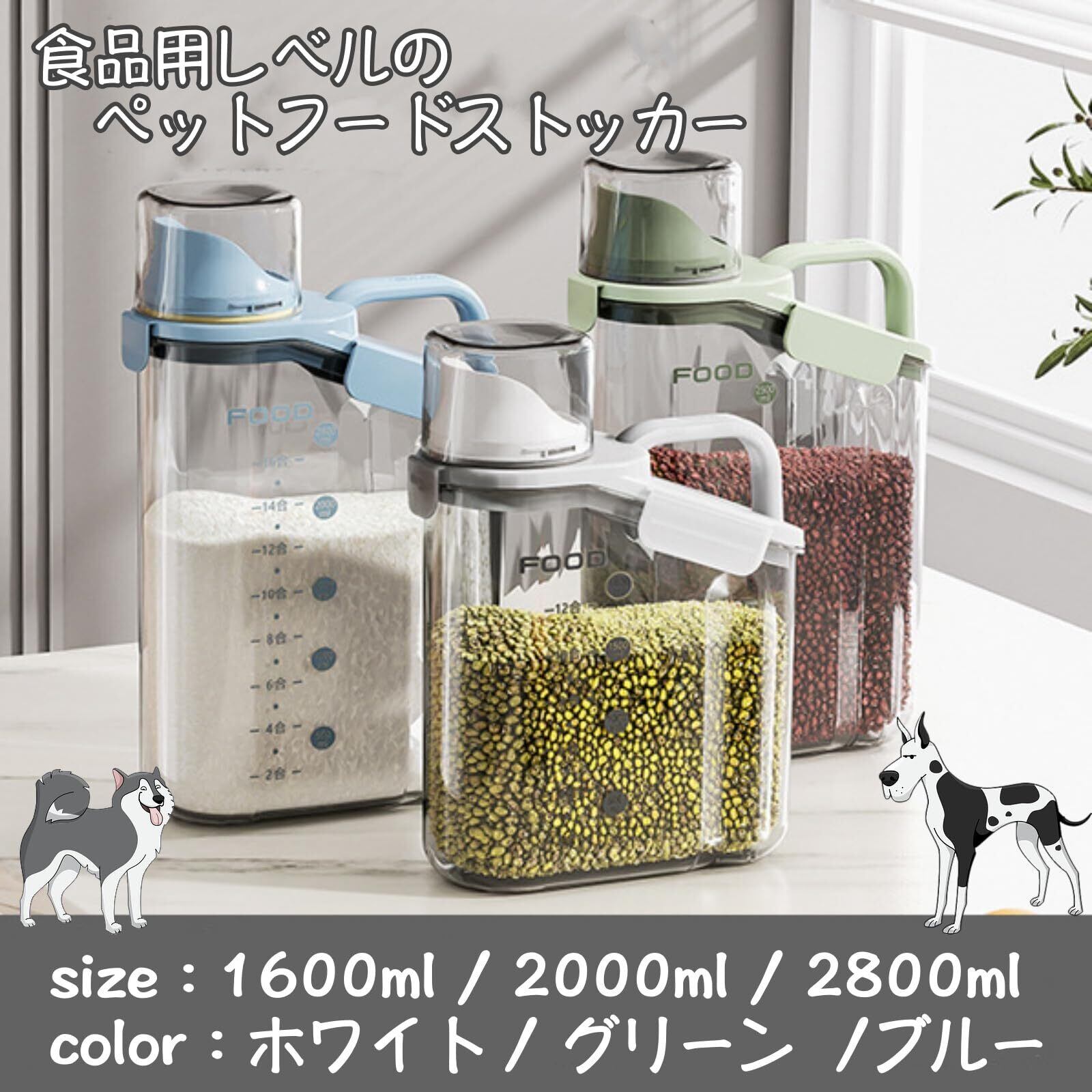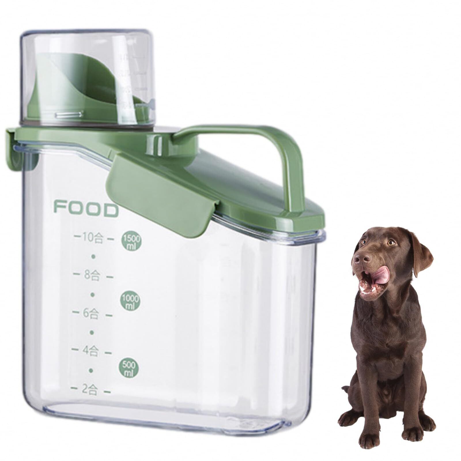Sweet Plus ペットフードストッカー ドッグフード 餌 保存容器 密閉 キャニスター 犬 猫 食品保存容器 ドライフード 残量がわかる 計量カップ付 (1600ml/グリーン)