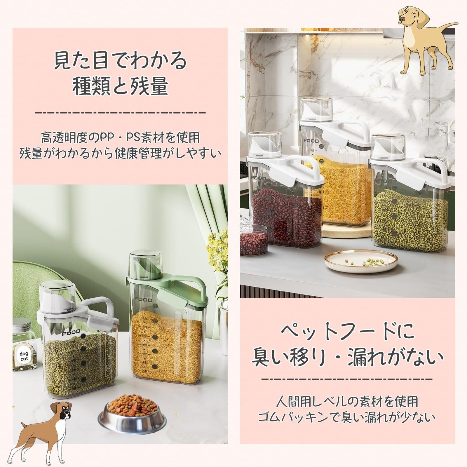 Sweet Plus「ペットフードストッカー ドッグフード 餌 保存容器 密閉 キャニスター 犬 猫 食品保存容器 ドライフード 残量がわかる 計量カップ付」