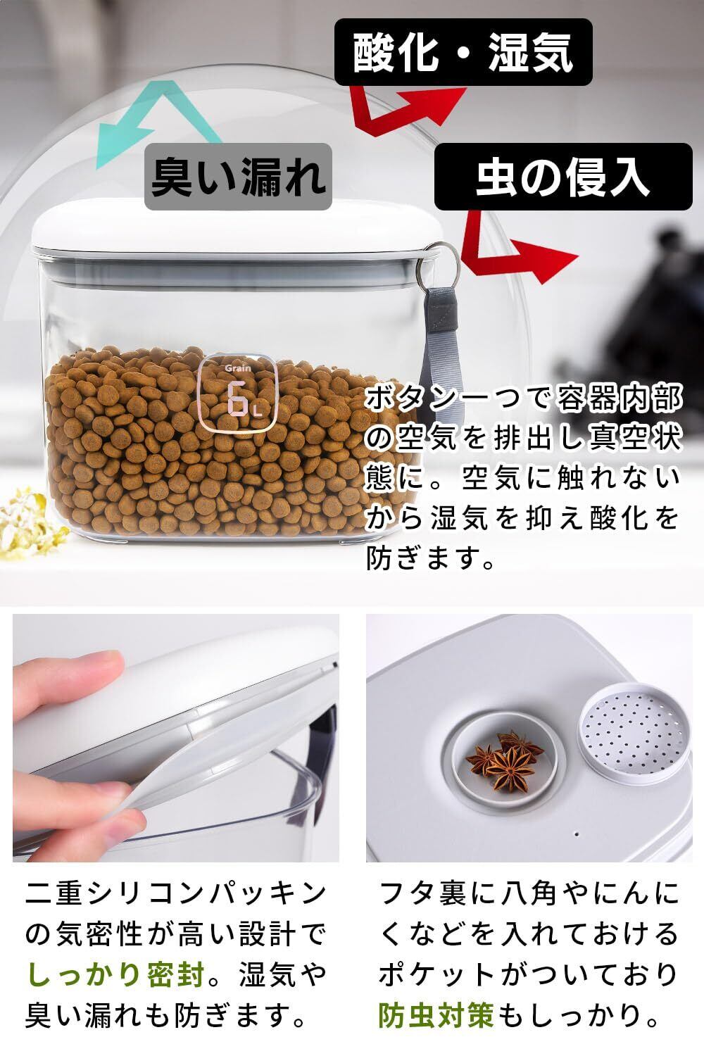 【獣医師監修】 ペットフード 真空保存容器 ペットフードストッカー 電動 自動真空 ドッグフード 保存容器 「鮮度を保ち酸化を防止!お手入れもしやすい設計」 (6L)