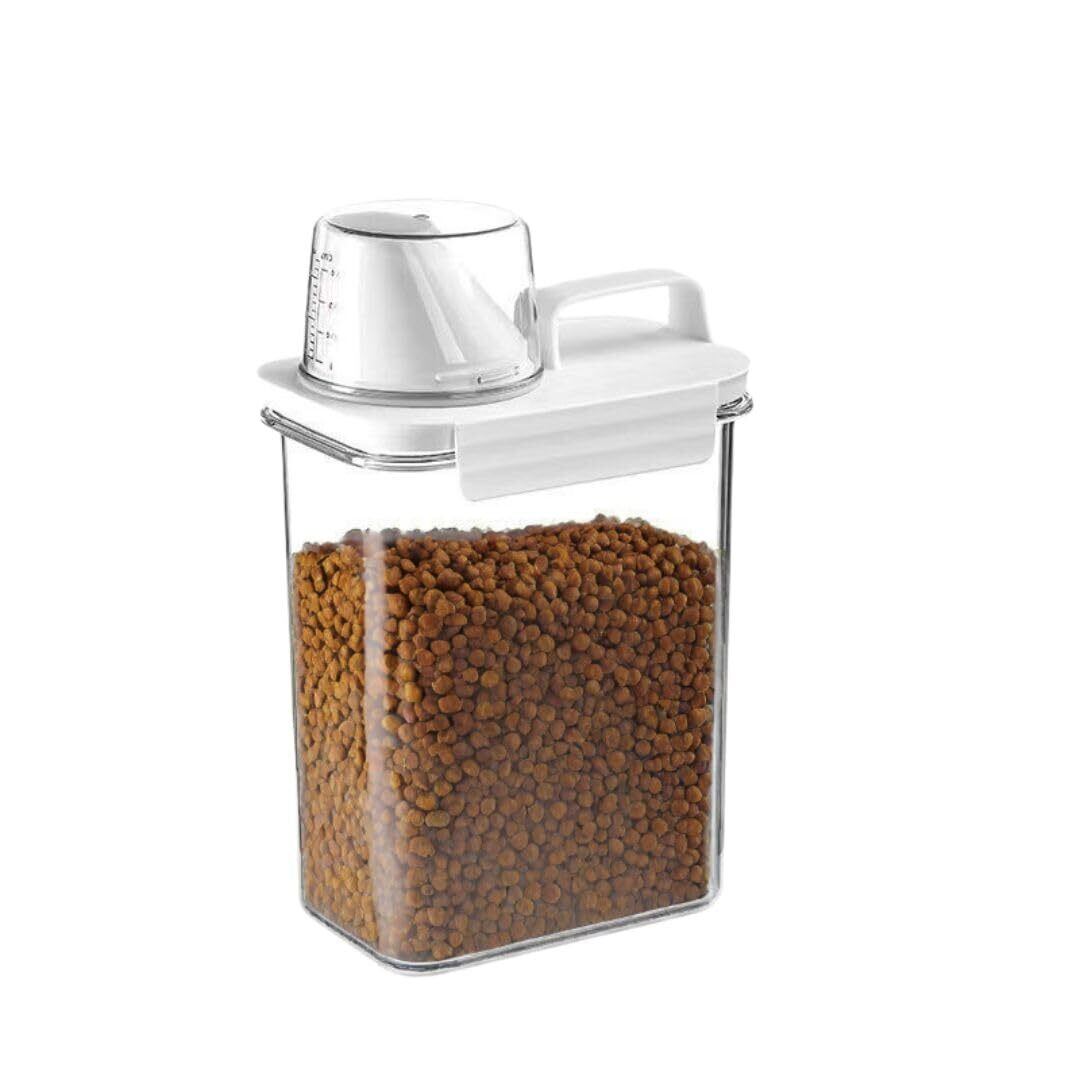 【特価商品】ペットフードストッカー 密閉容器 犬 猫 ドッグフード保存容器 計量カップ付き 透明 大容量 餌入れ 収納 1800ml