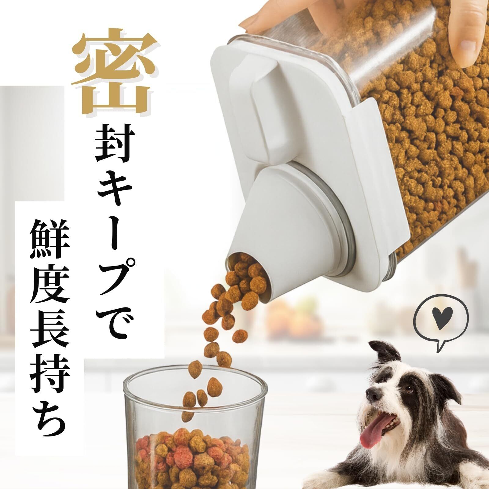 【2022最新】ペットフードストッカー 犬 猫 高気密 計量カップ付 透明 大容量 プラスチック (M)