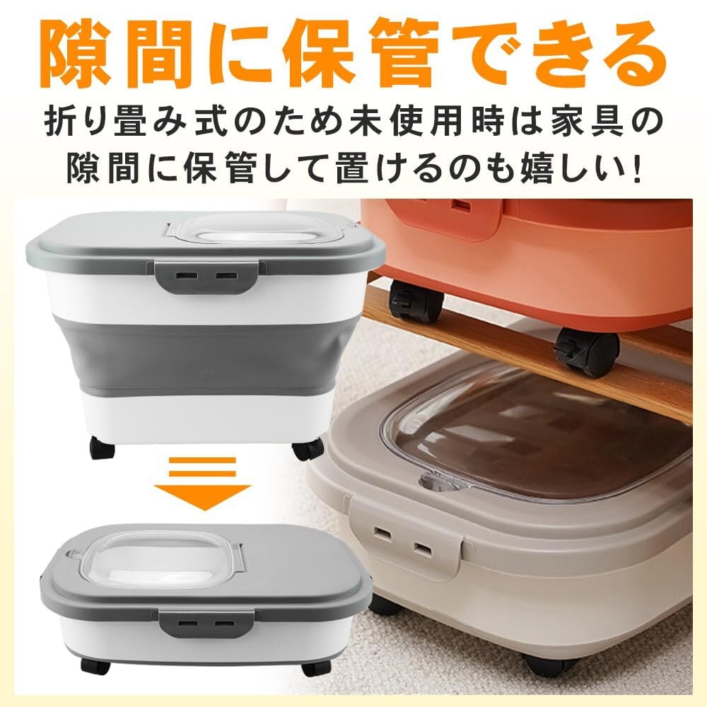 【新着商品】キャスター付きペットフードストッカー 折り畳み 酸化防止 ドライフード (ダークグレー)