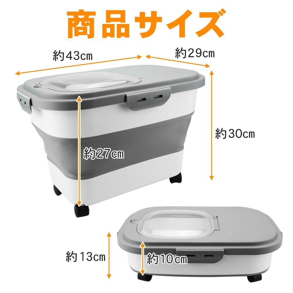 キャスター付きペットフードストッカー 折り畳み 酸化防止 ドライフード (ダークグレー)