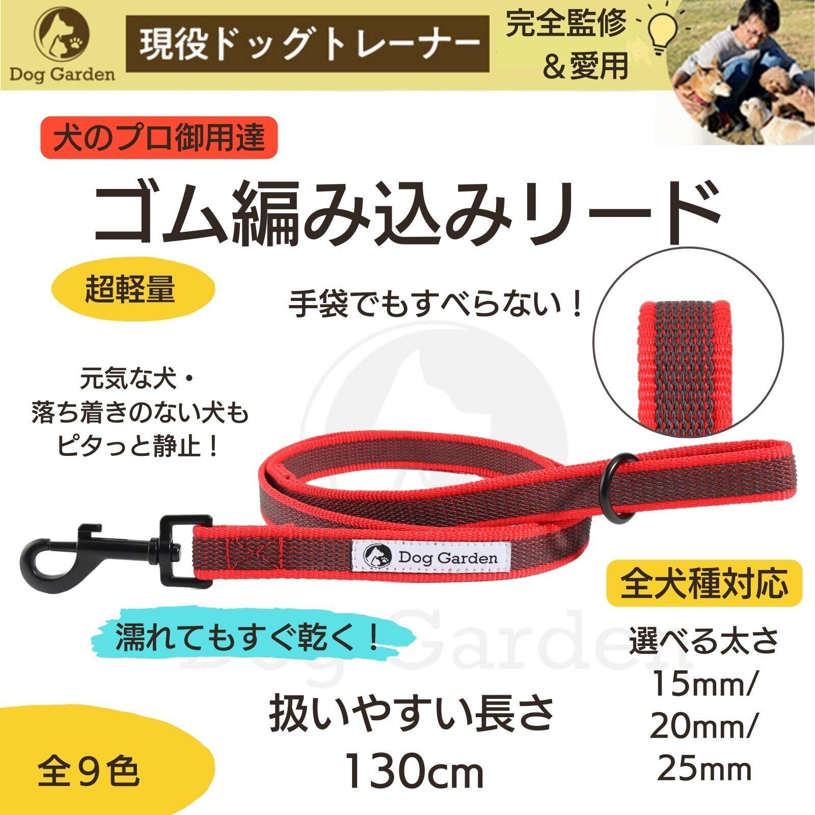 DogGarden 手袋でも滑らないリード 小型犬~中型犬用 軽い 洗える すぐ乾く 伸びない (レッド, 太さ20mm)