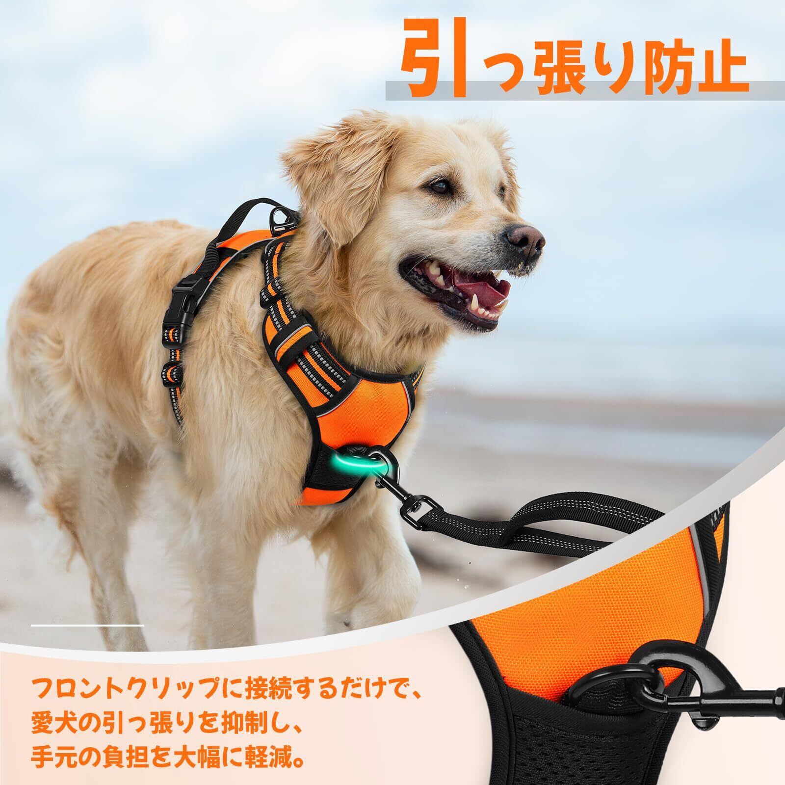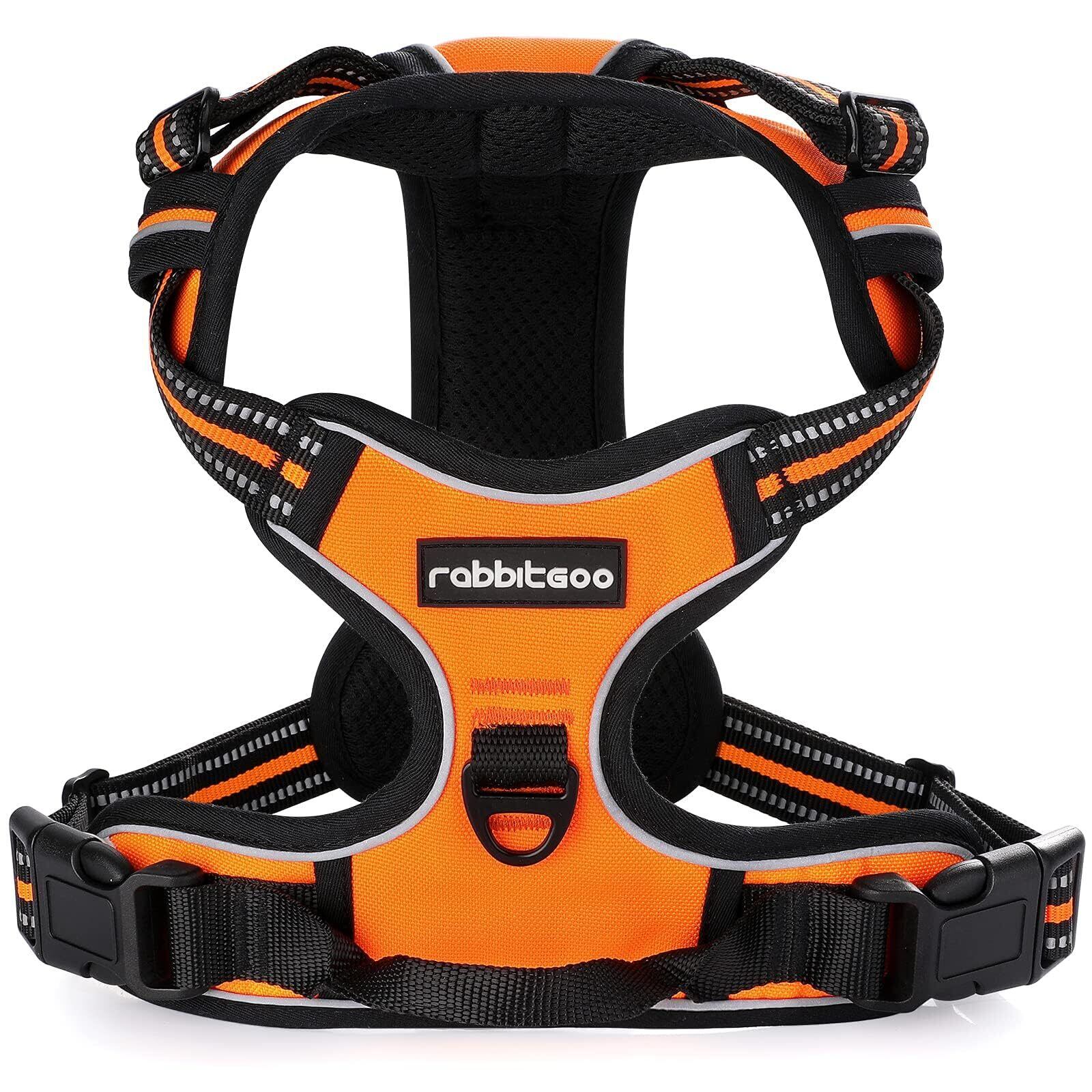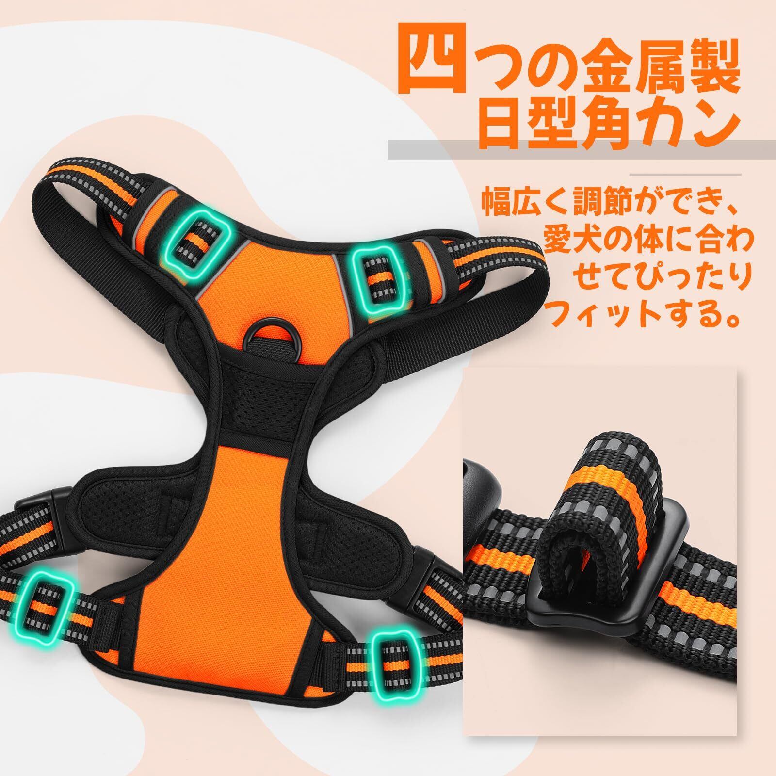 Rabbitgoo 犬 ハーネス 小型犬 ソフト かわいい 犬用胴輪 引っ張り防止 負担が少ない首輪 サイズ調整可 夜間反射 抜けない 通気性 咳き込み防止 散歩 歩行補助 老犬介護 しつけ 運動向き 犬 中型犬 大型犬 柴犬 秋田犬 (オレンジ S)