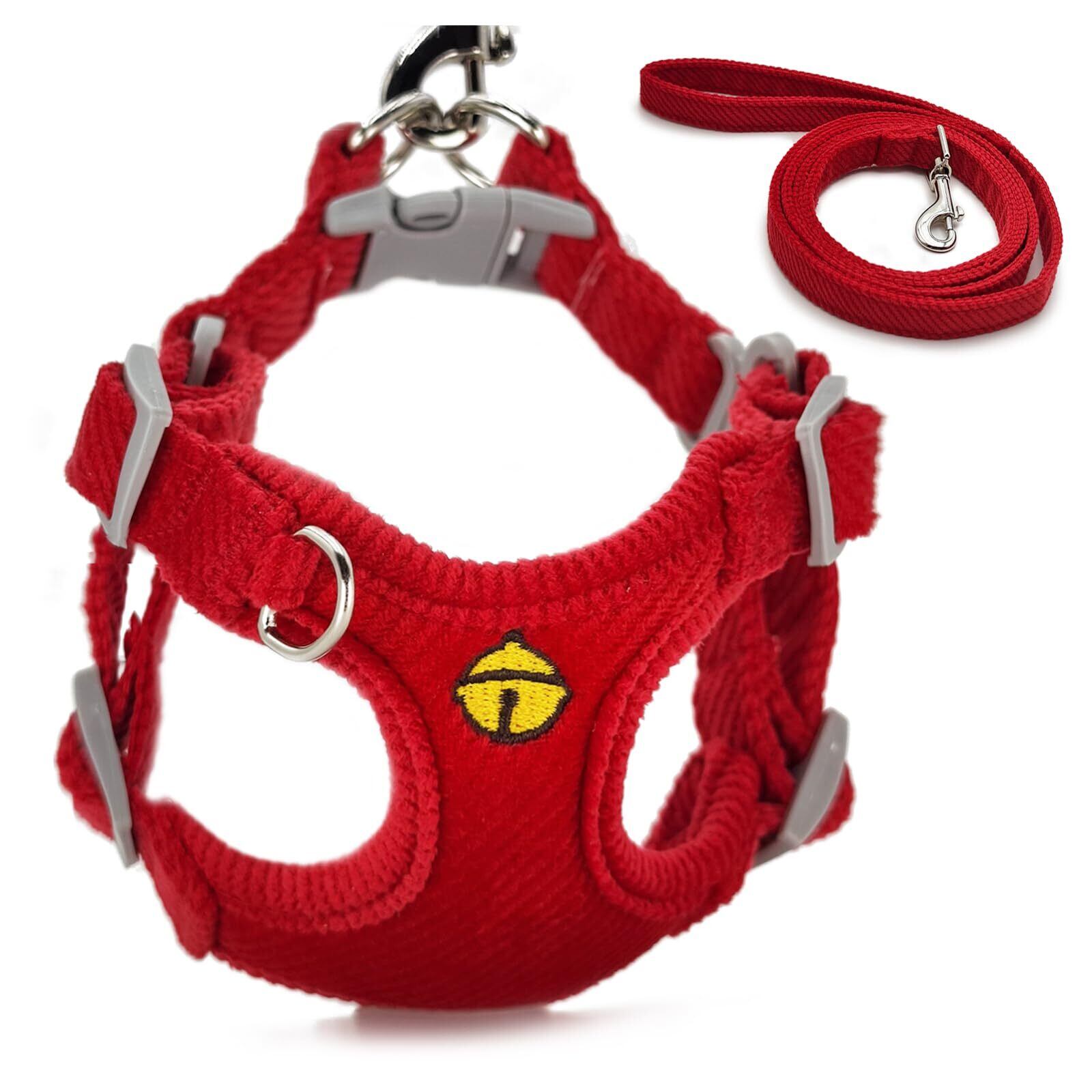 Miru pochi(ミルポッチ) 猫 犬 ハーネス 小型犬 りーど 首輪 ペット 超小型犬 おしゃれ 子犬 小型けん イヌ 胴輪 リード セット ソフト つけやすい 柔らかさ 抜けない 付き 軽量 調整 簡単 散歩 気管に優しい (XS レッド)