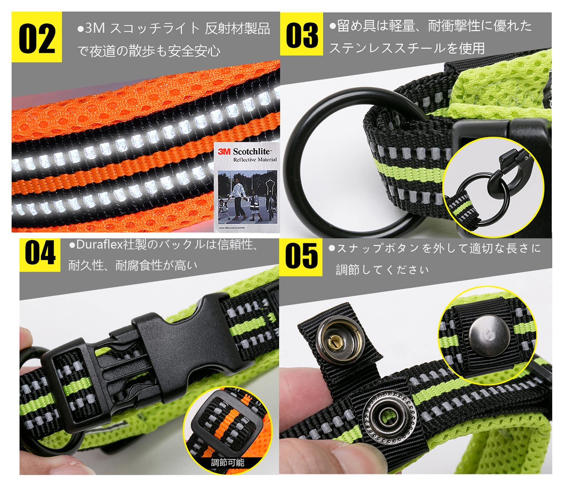 留め具は軽量、耐衝撃性に優れたステンレススチール素材を使用、愛犬の体への負担を軽減できます。