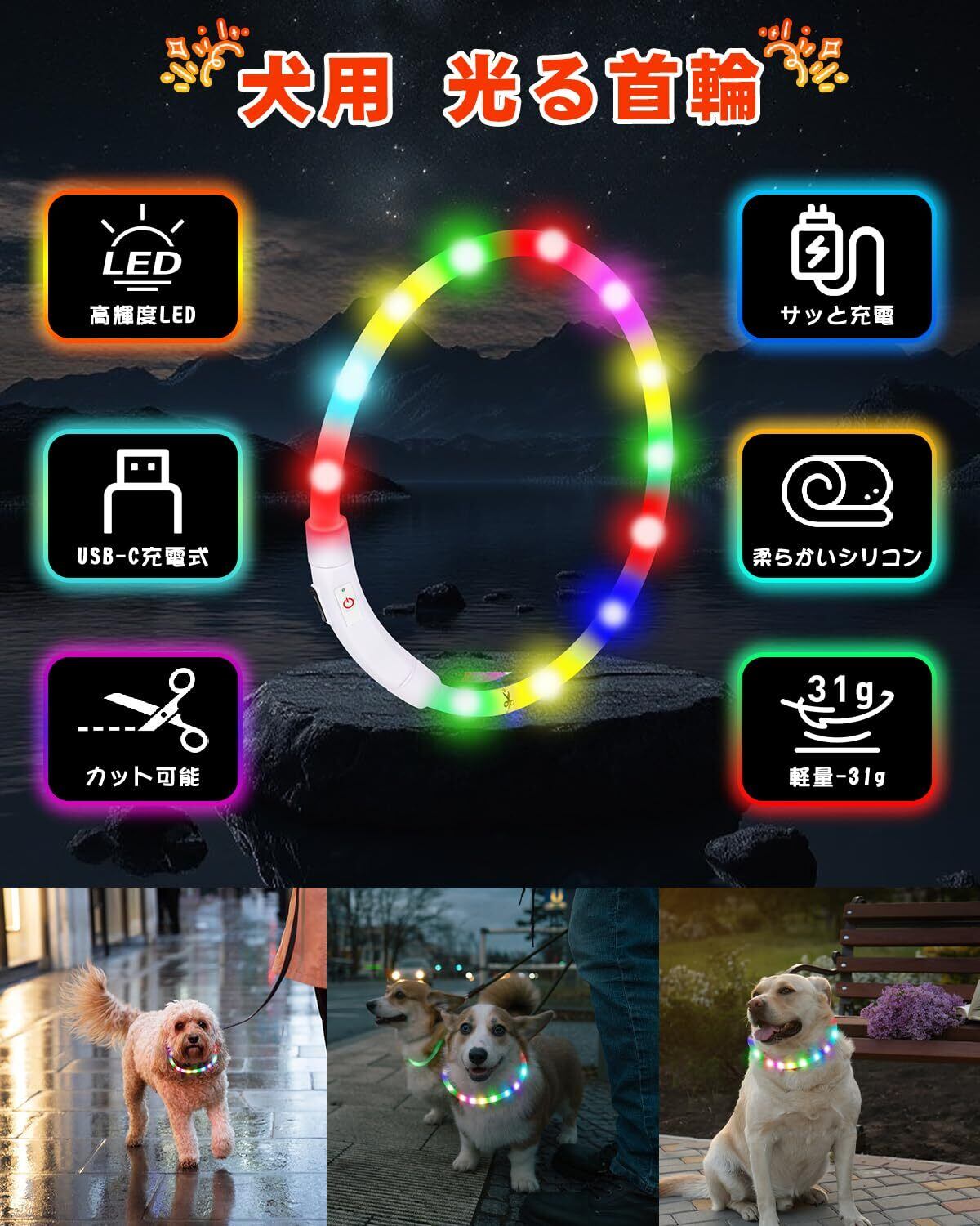 【新着商品】【限定】BaoCheng 光る首輪【LED輝度增加83%】犬 散歩 ライト 小型犬 中型犬 大型犬 サイズトリミング可能(50cm)