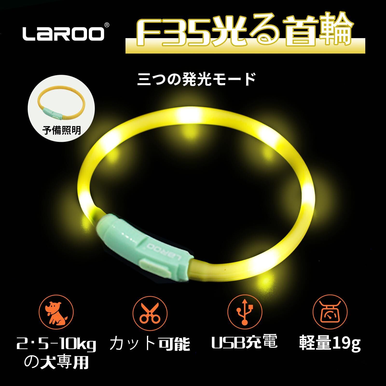 【在庫処分】LaRoo 光る首輪 犬 【明るさUP 60%】犬 散歩 ライト LED 充電式 小型犬 ペット用品 事故防止 サイズトリミング可能 超軽量19g 簡単着脱 おしゃれ (イエロー 35cm)