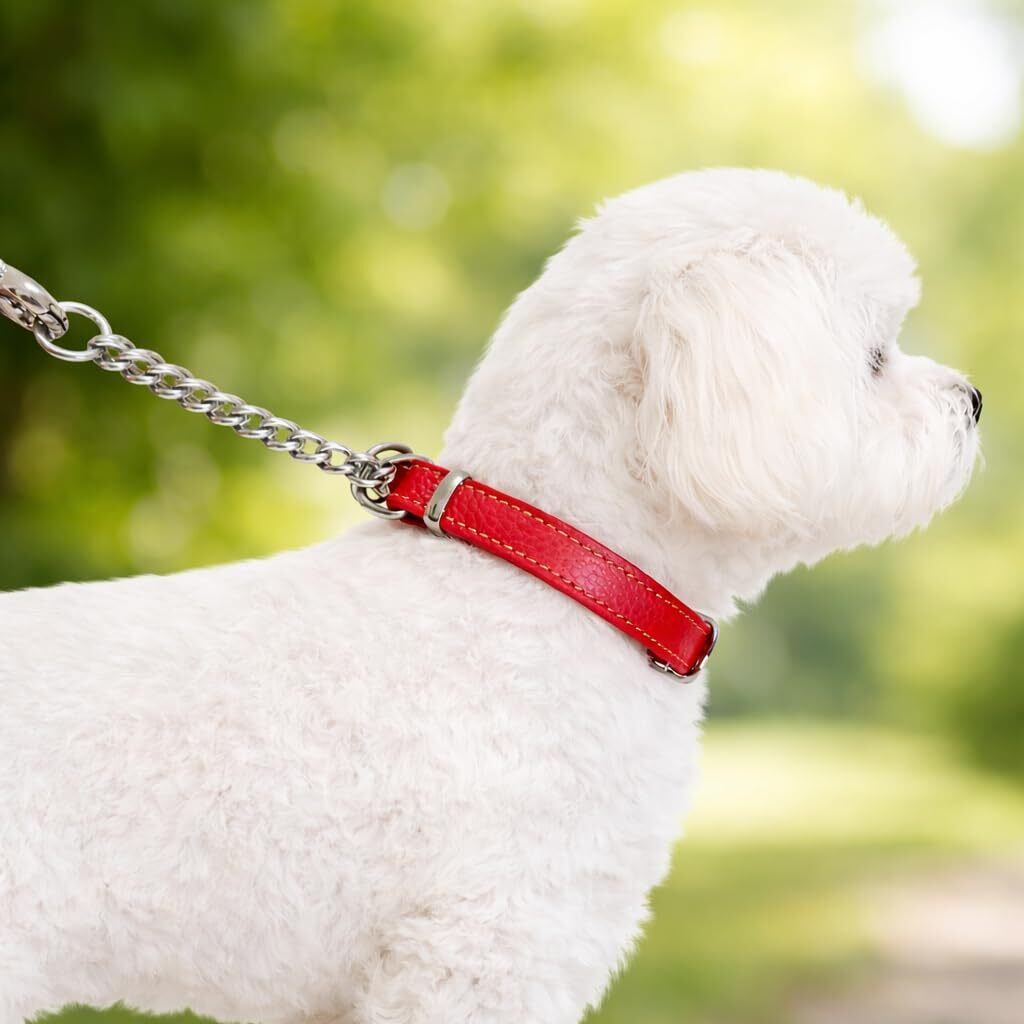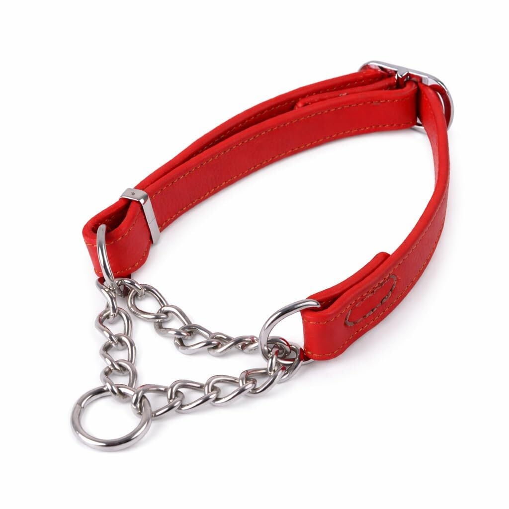 【在庫セール】本革製 ハーフチョーク 犬用カラー 調整可能 しつけ用 首輪 小型犬 中型犬 大型犬 3サイズ展開(S/M/L)3色展開 (レッド, M)
