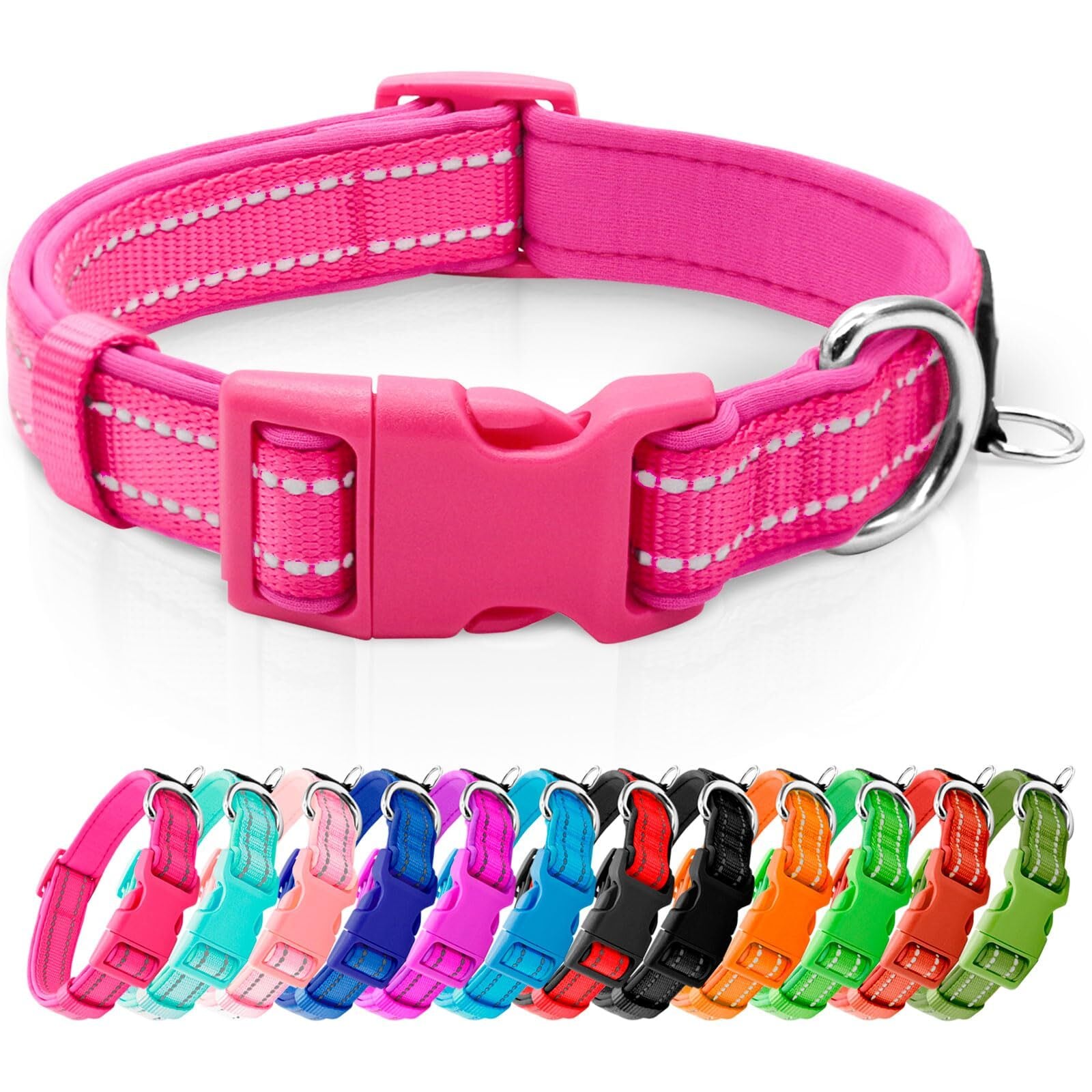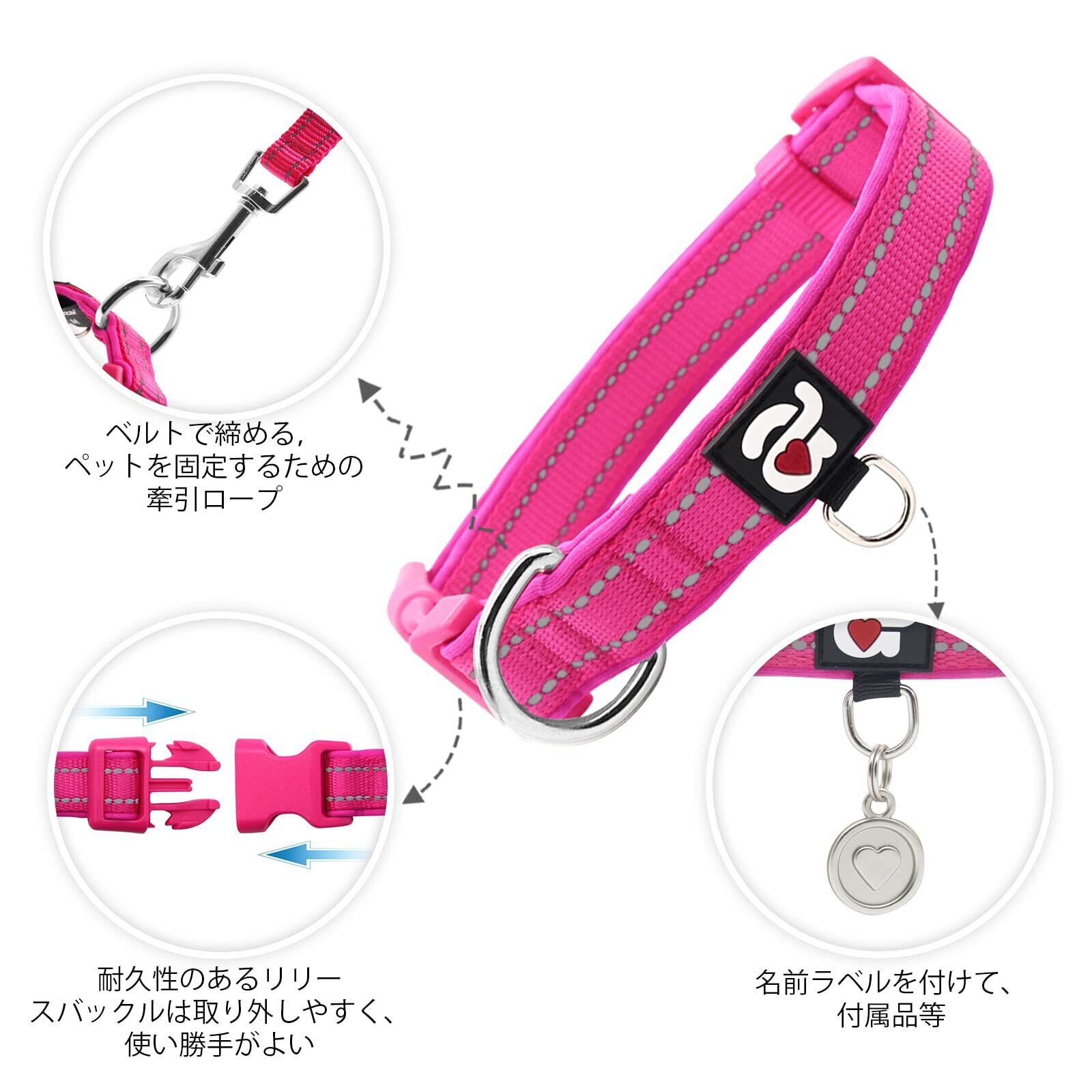 azuza 反射犬の首輪、柔らかいクロロプレンゴム充填ペット首輪、IDマークリング付き、調節可能、中型犬、メイル赤色、M