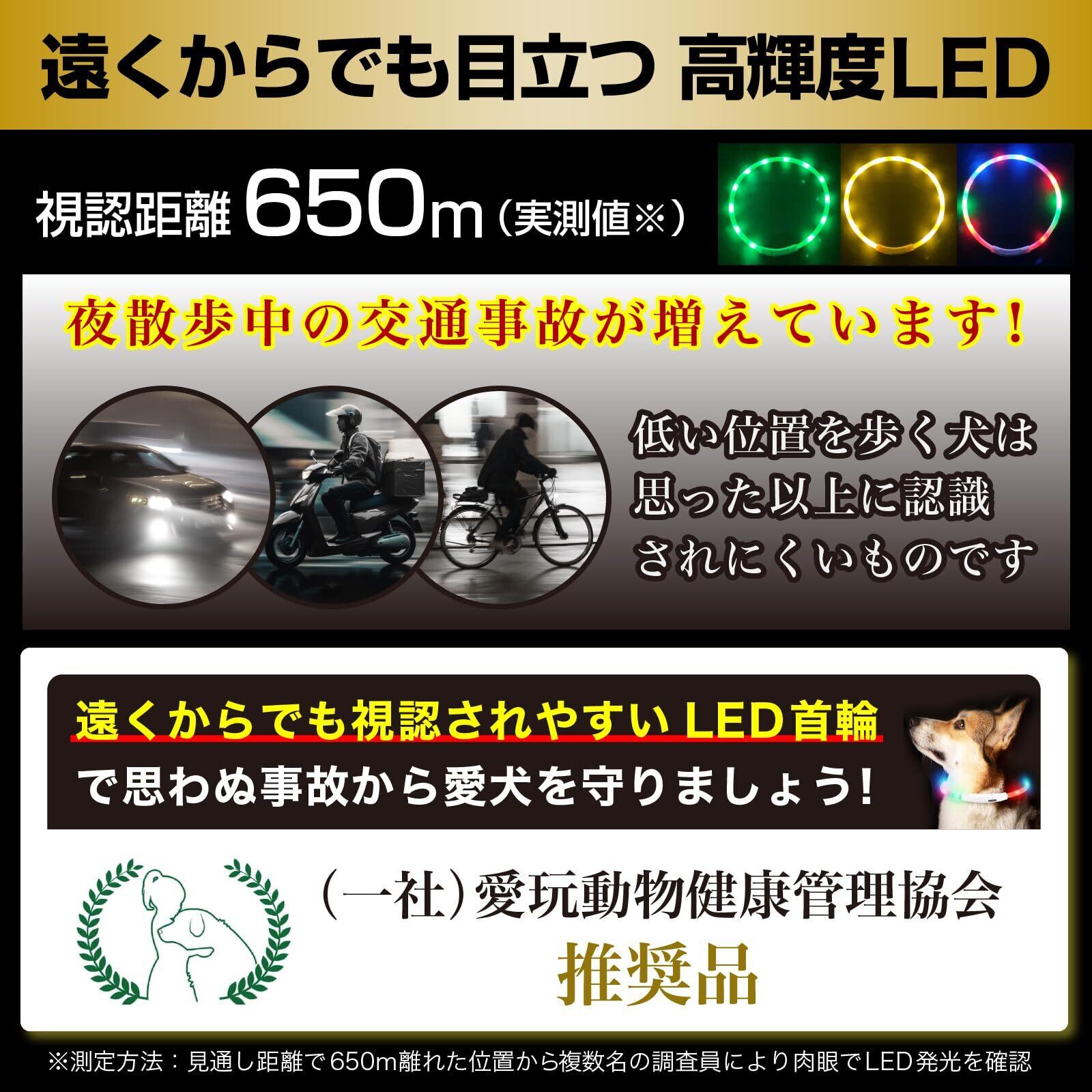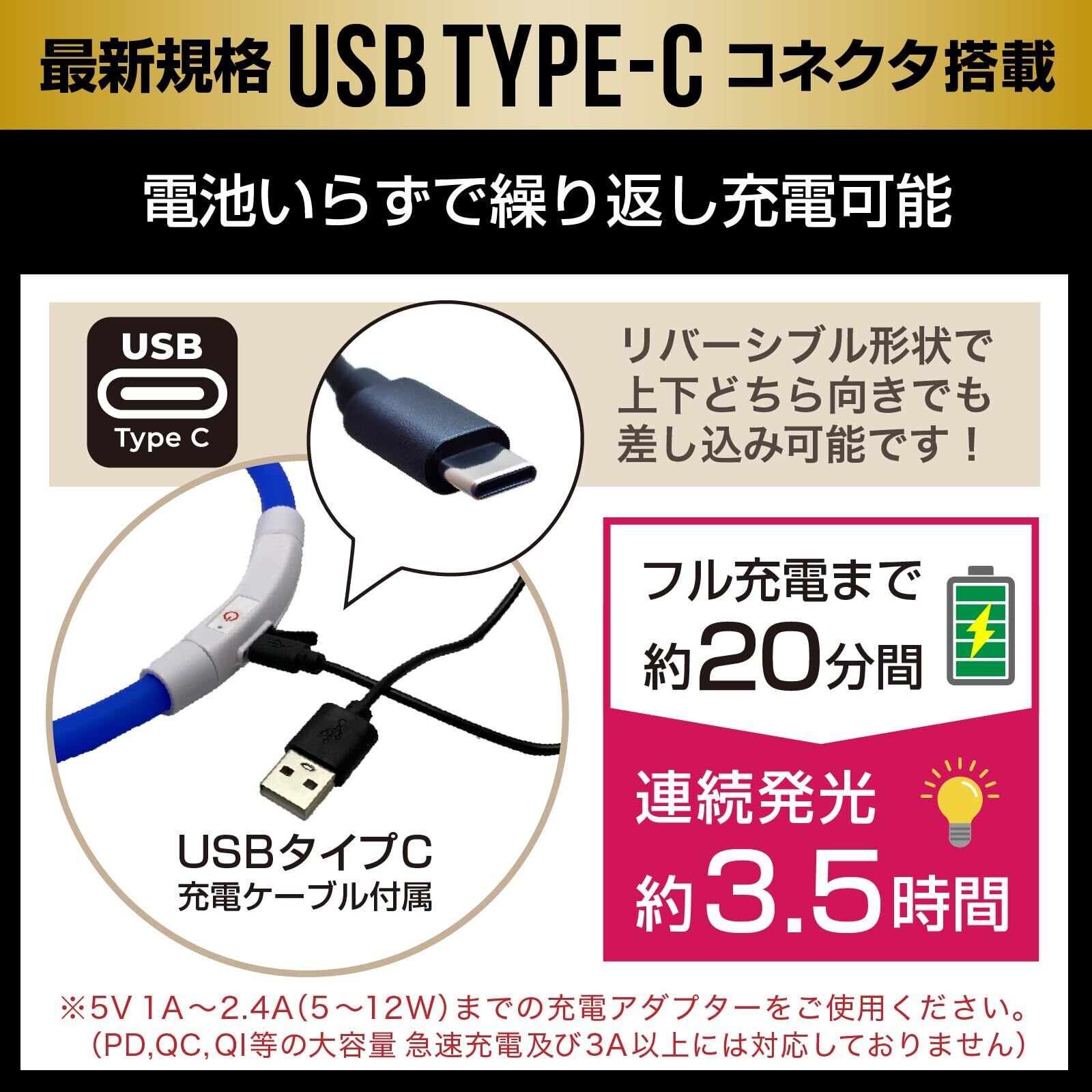 【専門家監修/JPPMAマーク取得】 光る首輪 【視認距離650m実証】USB Type-C 充電 LED 明るい 夜間 ペット 散歩 ライト 軽い やわらか シリコン 小型犬 中型犬 大型犬 サイズ調節 (ホワイト)