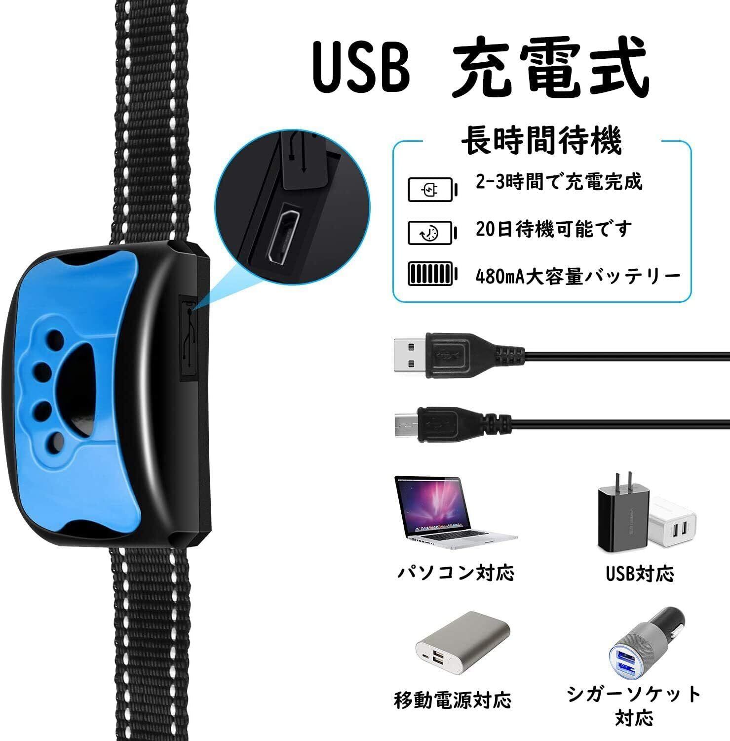 【長く使える充電式】2時間充電で約20日間使用可能。USB充電方式で、吠え防止に適しています。
