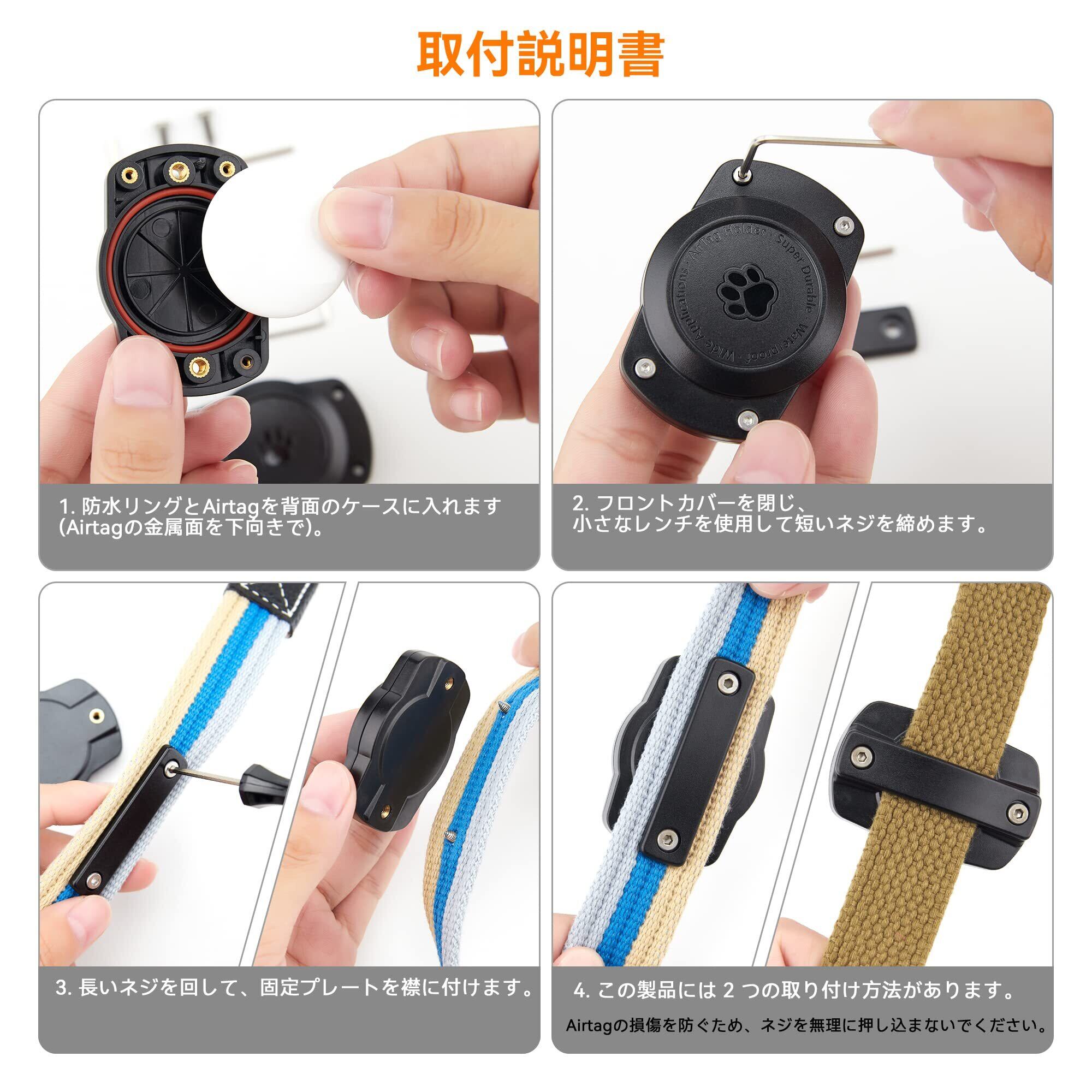 【取り付け簡単】必要な道具が付属しており、ネジを押し込むだけで簡単に首輪に取り付けられます。Airtag ホルダーは首輪にしっかり取り付けられているため、取り外すのが困難です。愛犬の首輪が取り外さない限り、AirTag も取り外せないのでご安心ください。