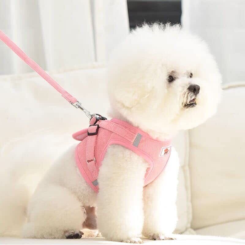 【特価商品】BBGS ペットハーネス 犬用ハーネス 胴輪小型犬 猫用 セット リード おしゃれ 可愛い 人気 咳き込み軽減 通気性 簡単着脱 首輪 夜間反射テープ 安全 ハンドル付き 調節可能 両肩を通すタイプ ウェアハーネス お出かけ散歩 外出 通院 避難 (M, ピンク)