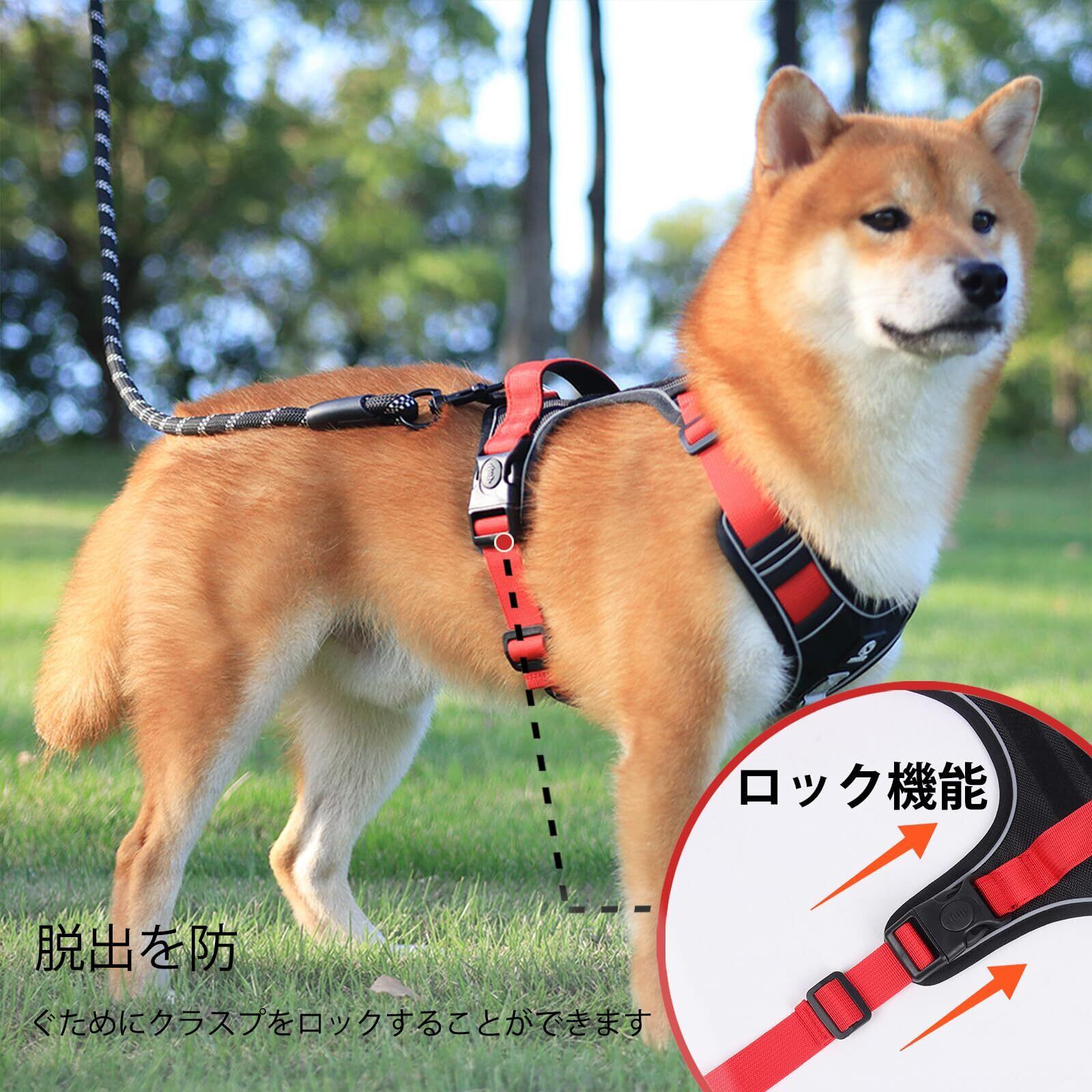 【夜間も安全】:この犬用ハーネスは反射ステッチが特徴で、夜間に使用すると犬の視認性が高く、あなたとあなたの犬が夜間に安全であることを保証します。